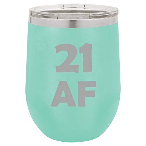 12 oz Double Wall Vacuum Insulated Stainless Steel Stemless Wine Tumbler Glass Coffee Travel Mug With Lid 21 AF 21st Birthday Funny (Teal)