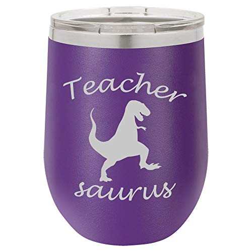 12 oz Double Wall Vacuum Insulated Stainless Steel Stemless Wine Tumbler Glass Coffee Travel Mug With Lid Teacher Saurus Funny T-Rex (Purple)