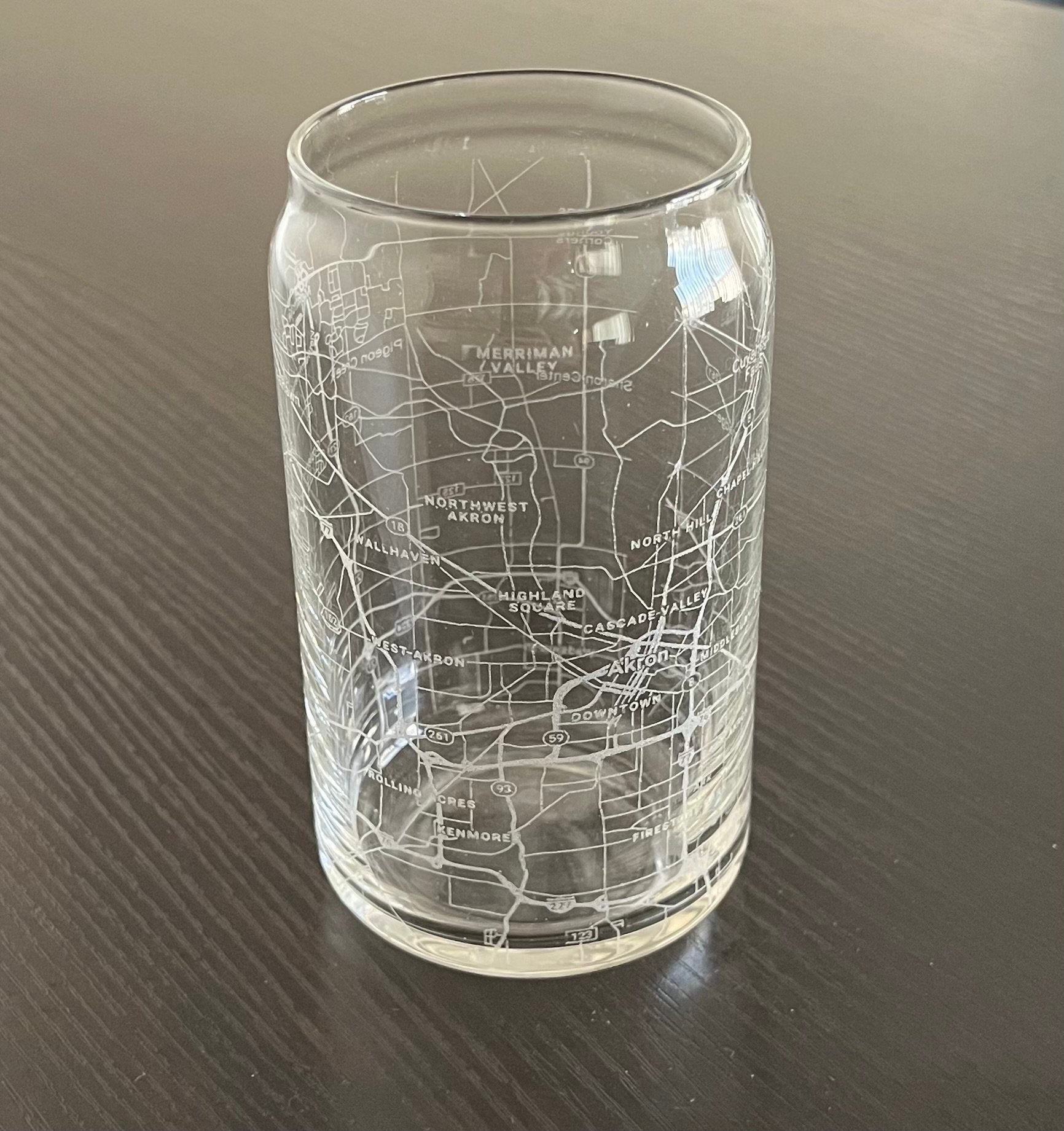 16 oz Beer Can Glass Urban City Map Akron, OH