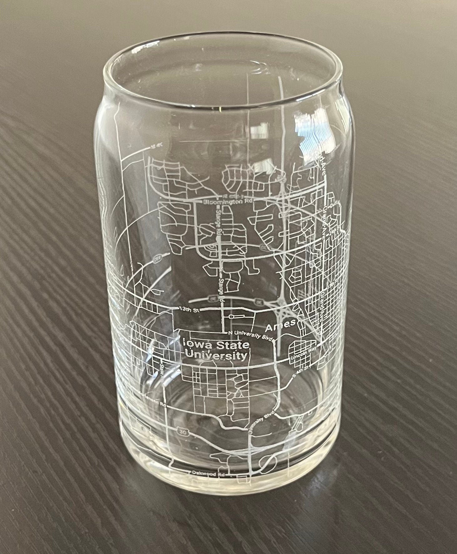 16 oz Beer Can Glass Urban City Map Ames, IA