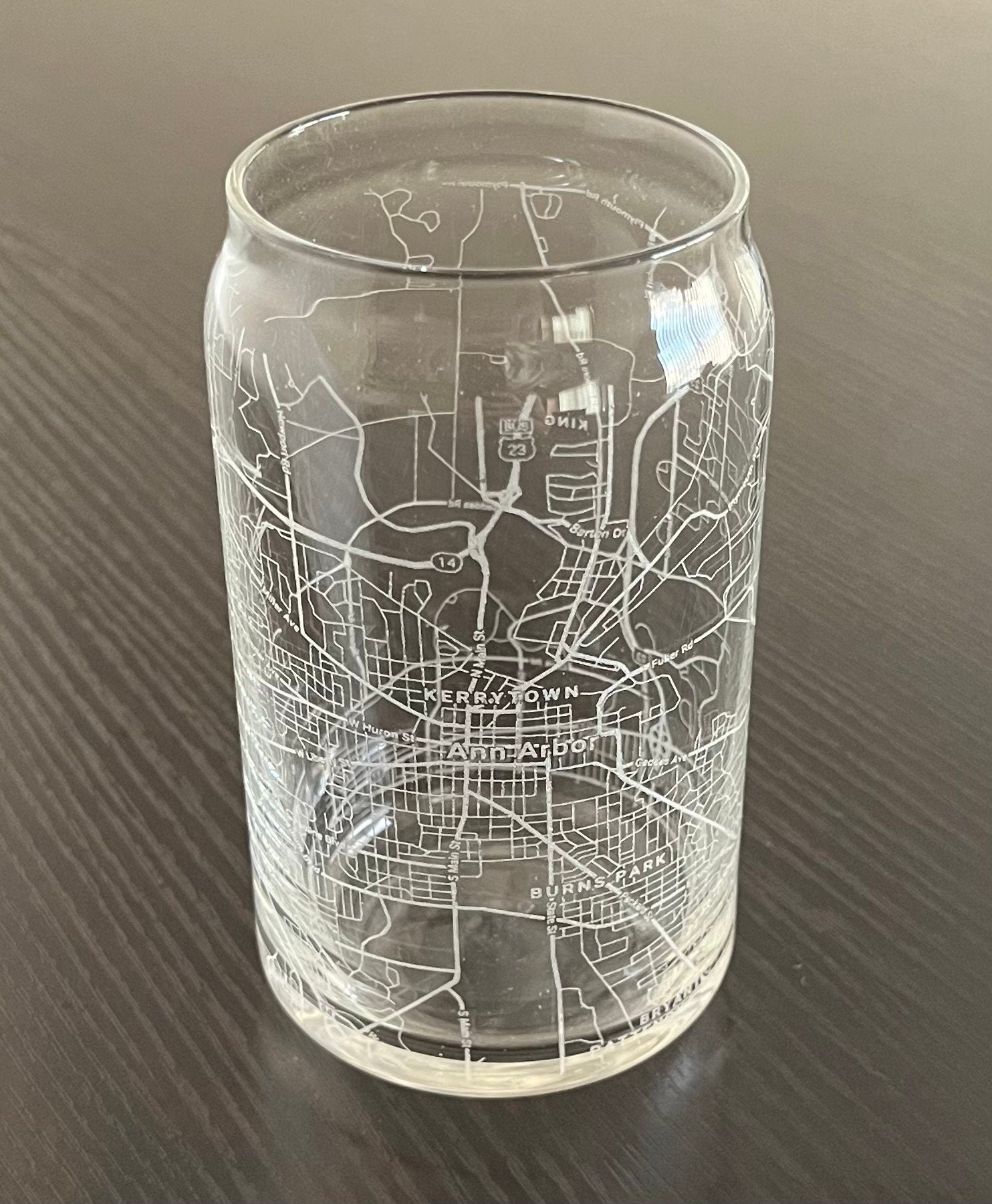 16 oz Beer Can Glass Urban City Map Ann Arbor, MI