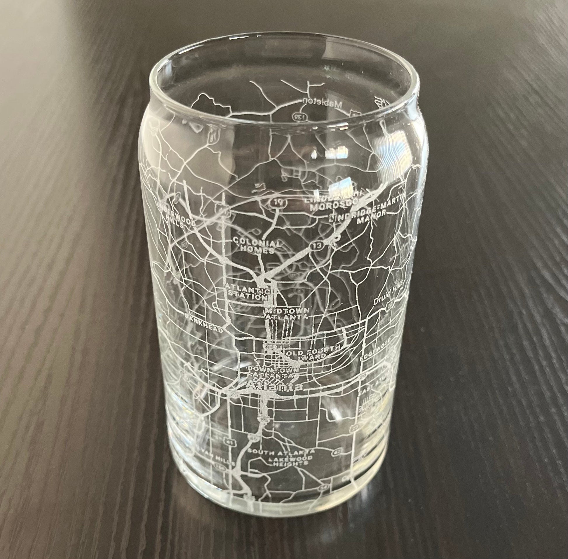 16 oz Beer Can Glass Urban City Map Atlanta, GA