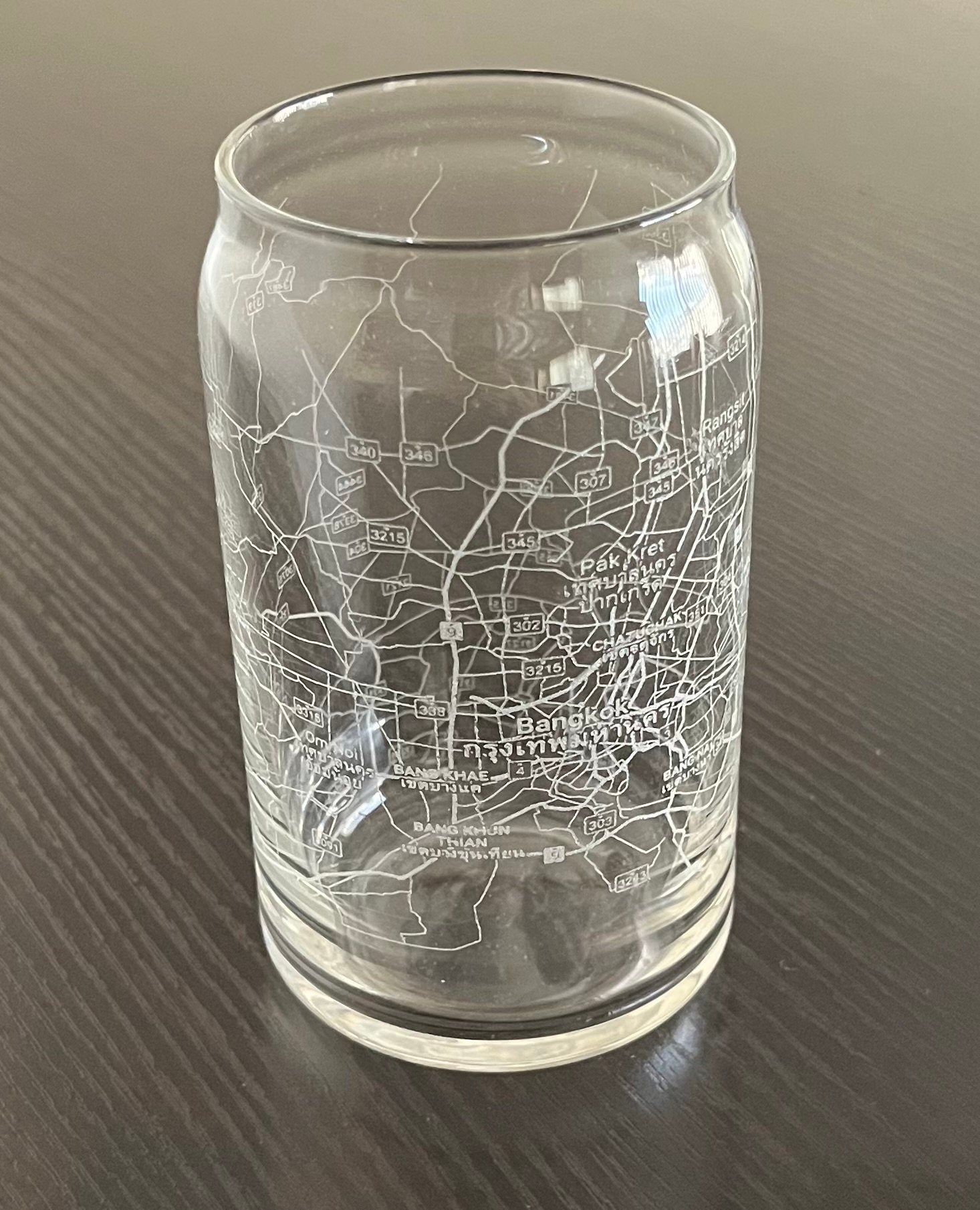 16 oz Beer Can Glass Urban City Map Bangkok, Thailand