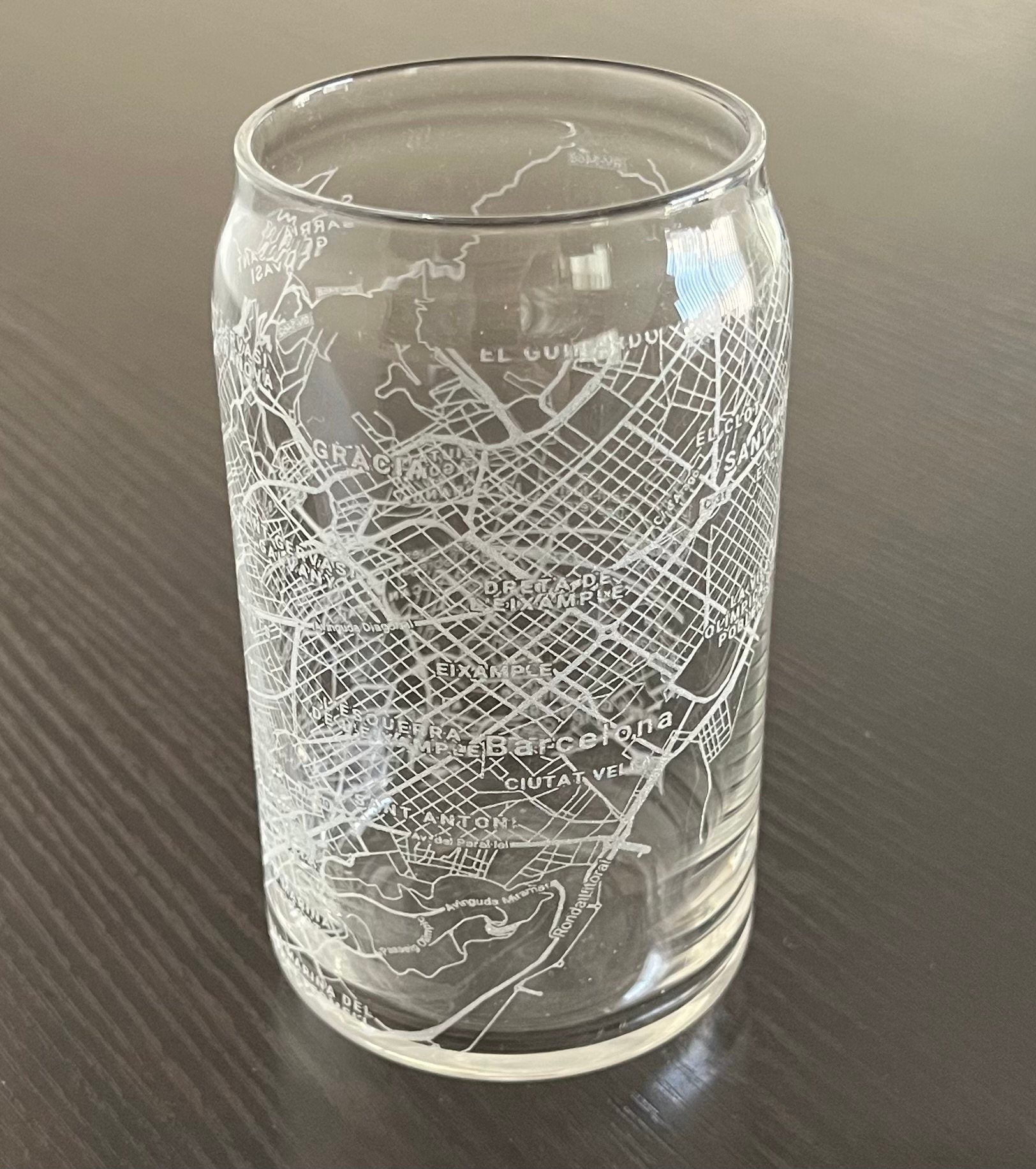 16 oz Beer Can Glass Urban City Map Barcelona, Spain