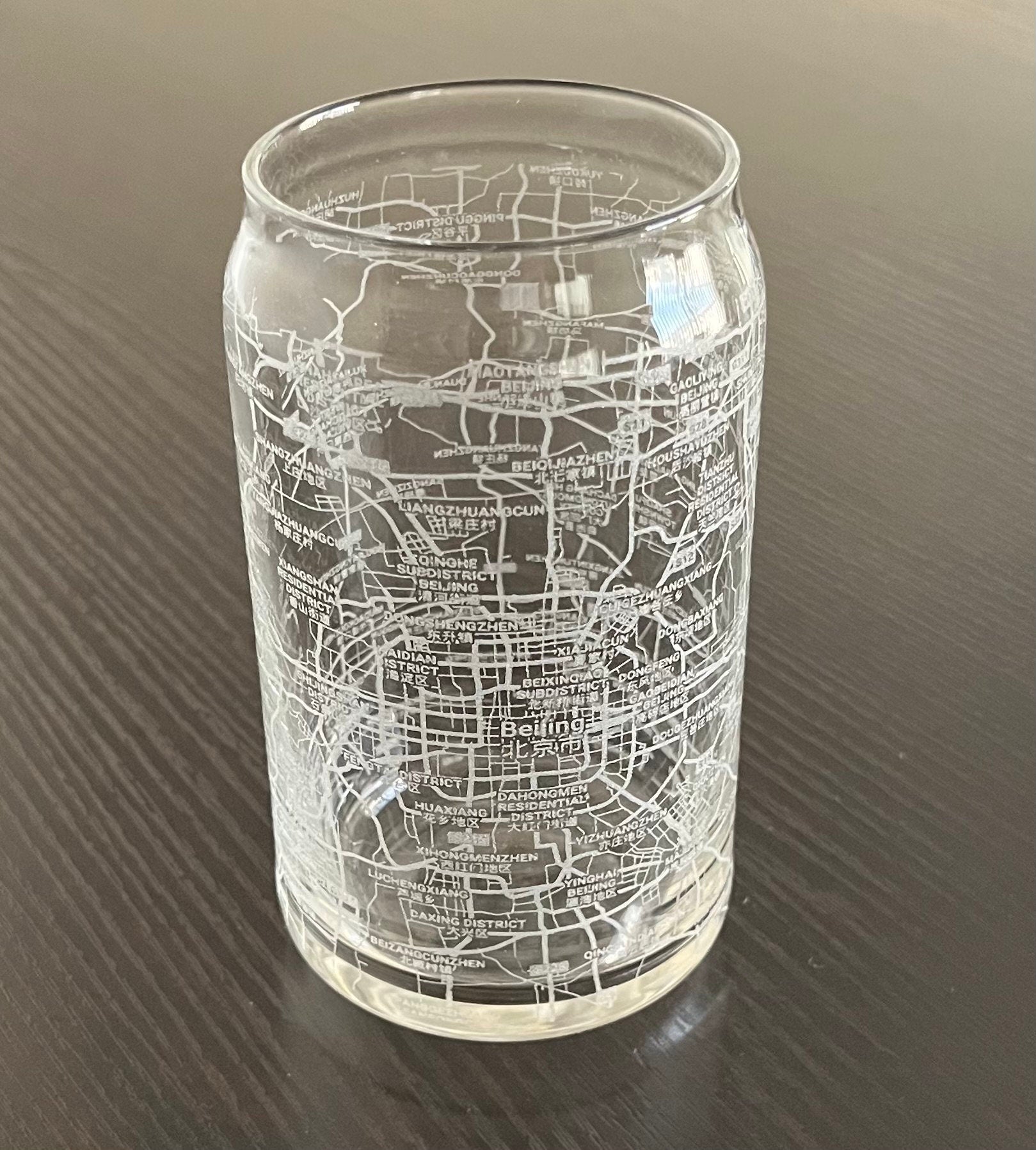 16 oz Beer Can Glass Urban City Map Beijing, China