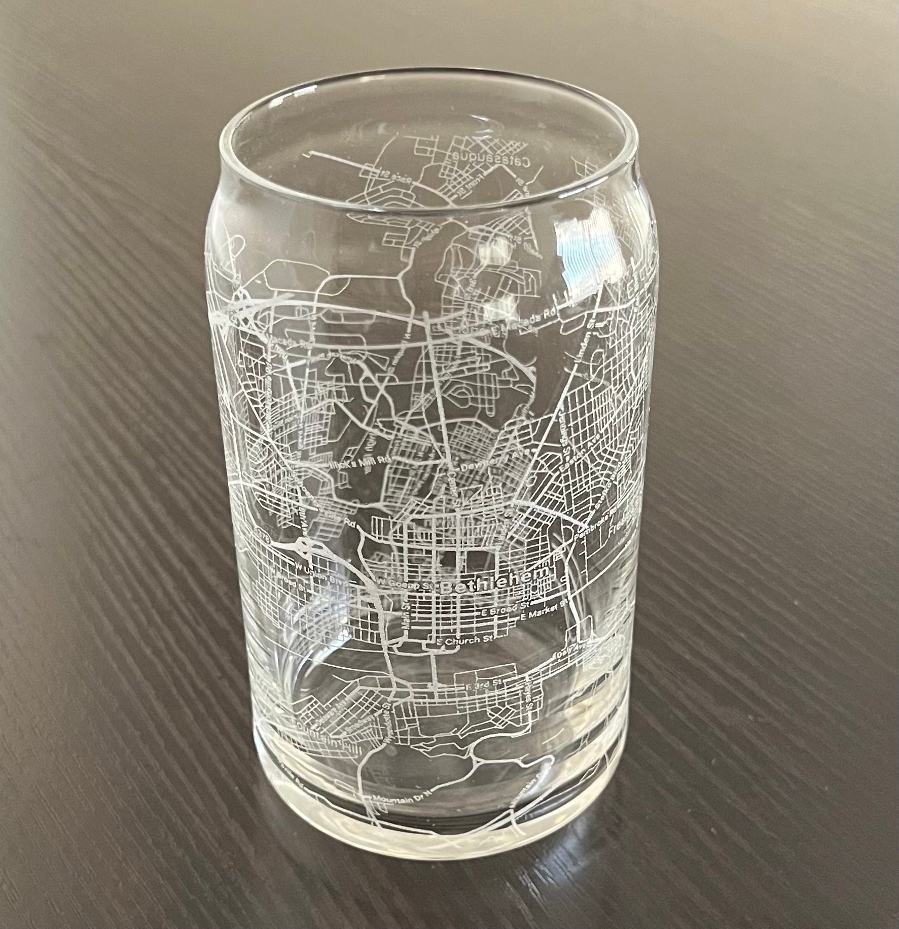 16 oz Beer Can Glass Urban City Map Bethlehem, PA