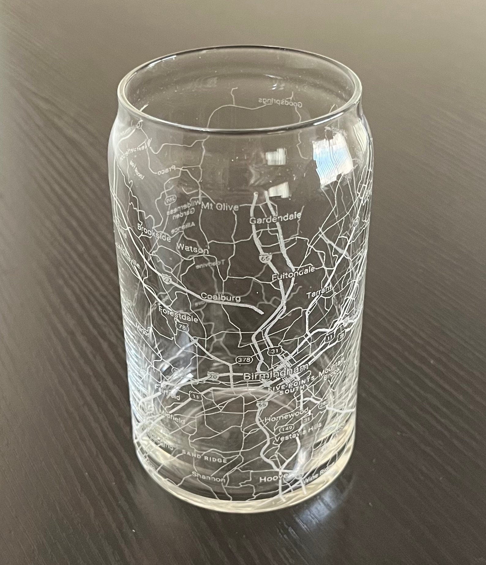 16 oz Beer Can Glass Urban City Map Birmingham, AL