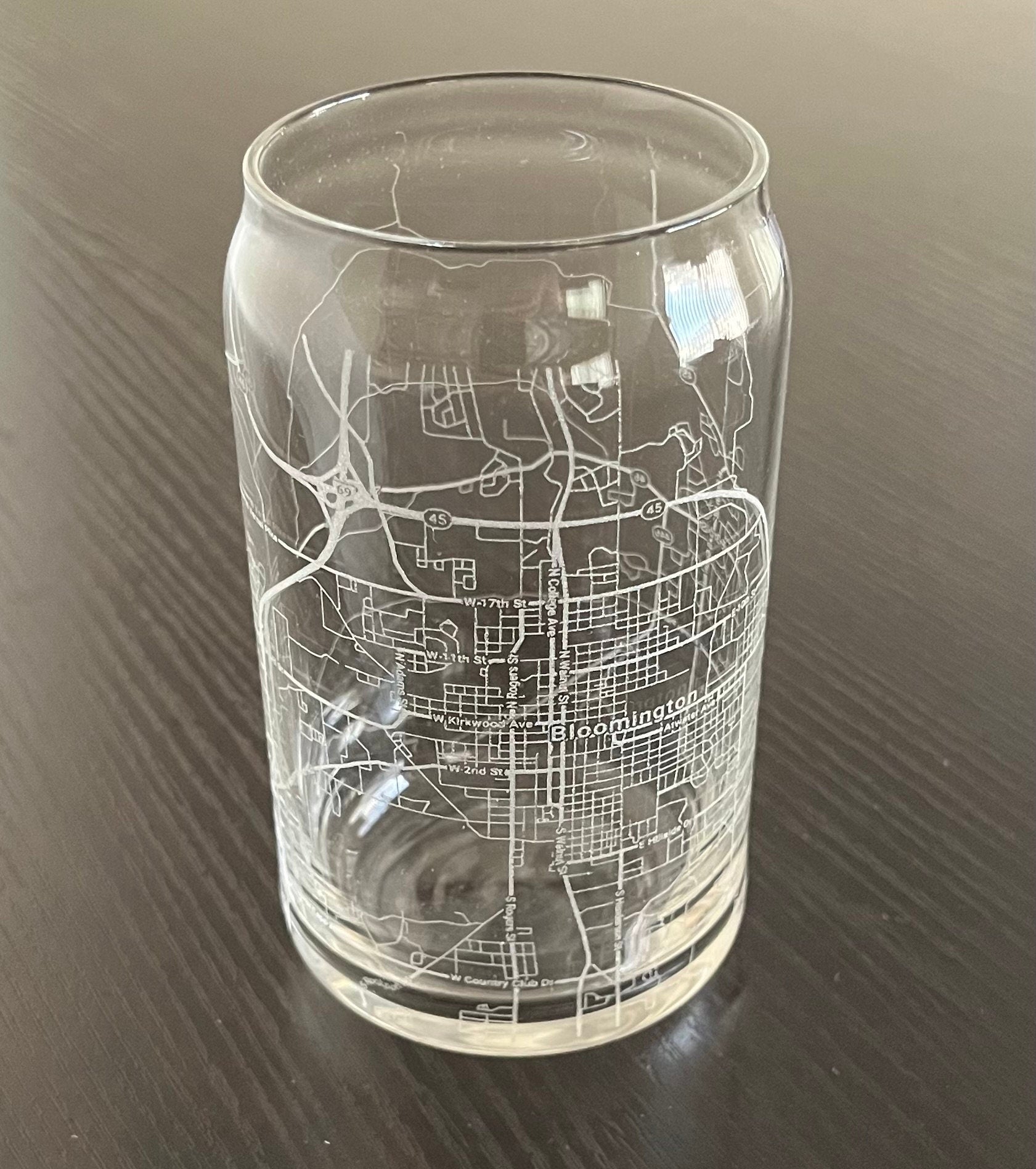 16 oz Beer Can Glass Urban City Map Bloomington, IN
