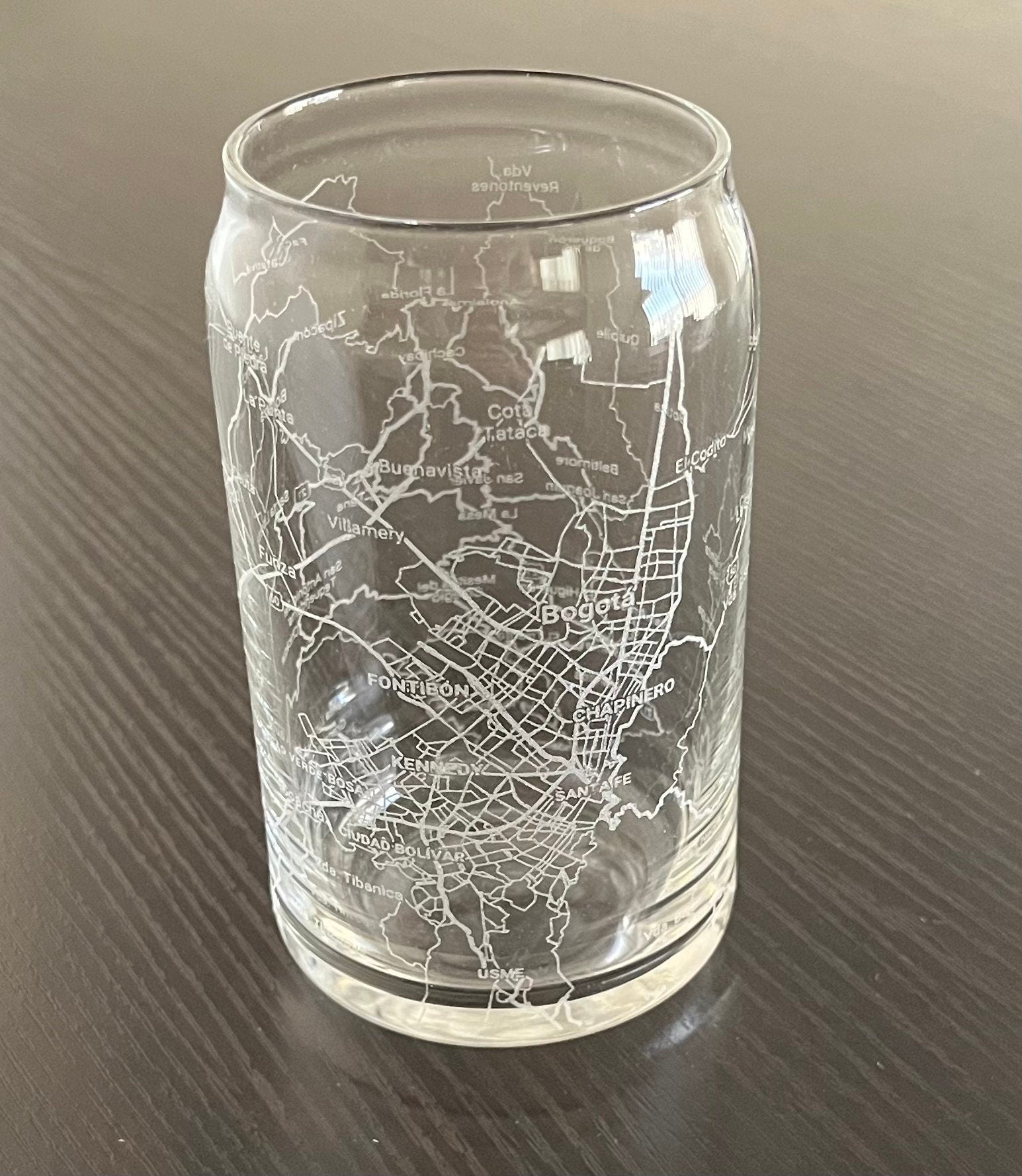 16 oz Beer Can Glass Urban City Map Bogota, Colombia