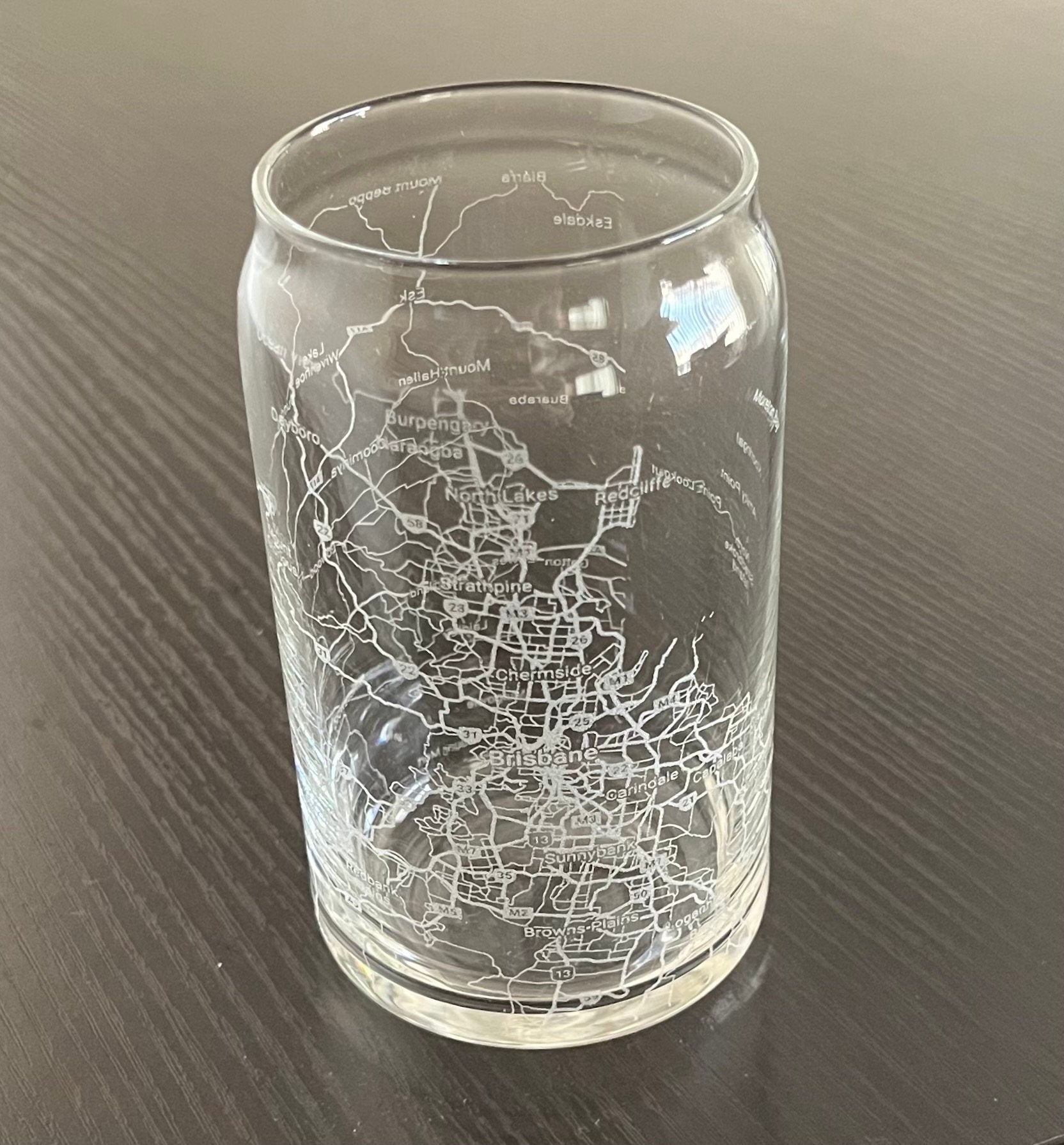 16 oz Beer Can Glass Urban City Map Brisbane QLD, Australia