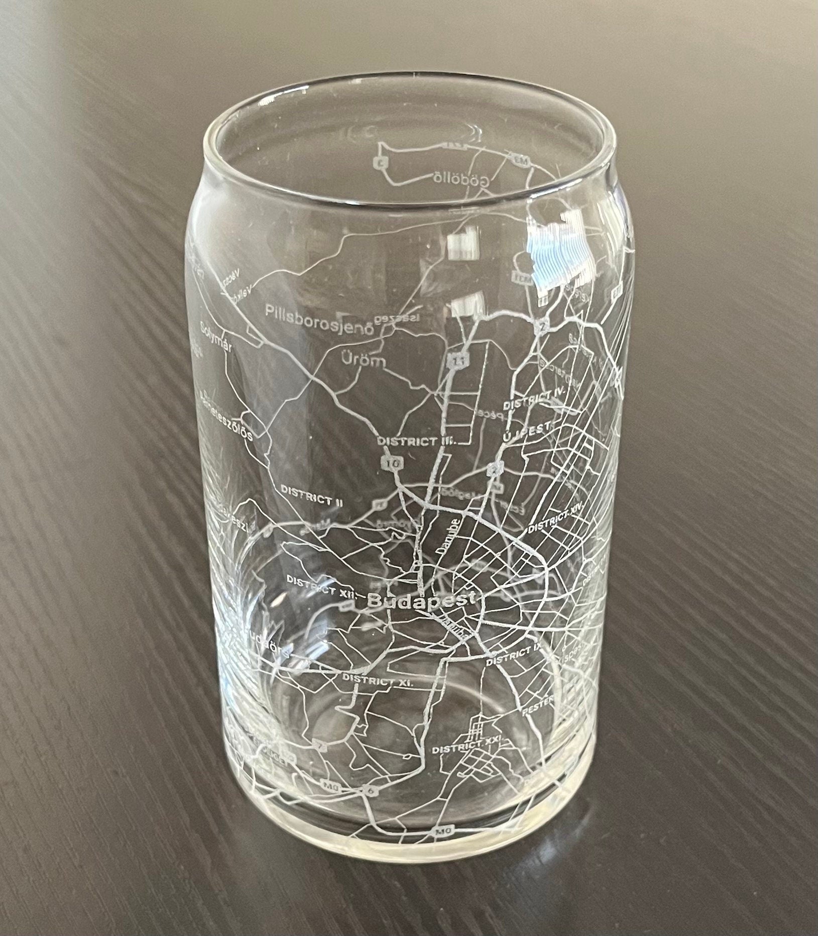 16 oz Beer Can Glass Urban City Map Budapest, Hungary