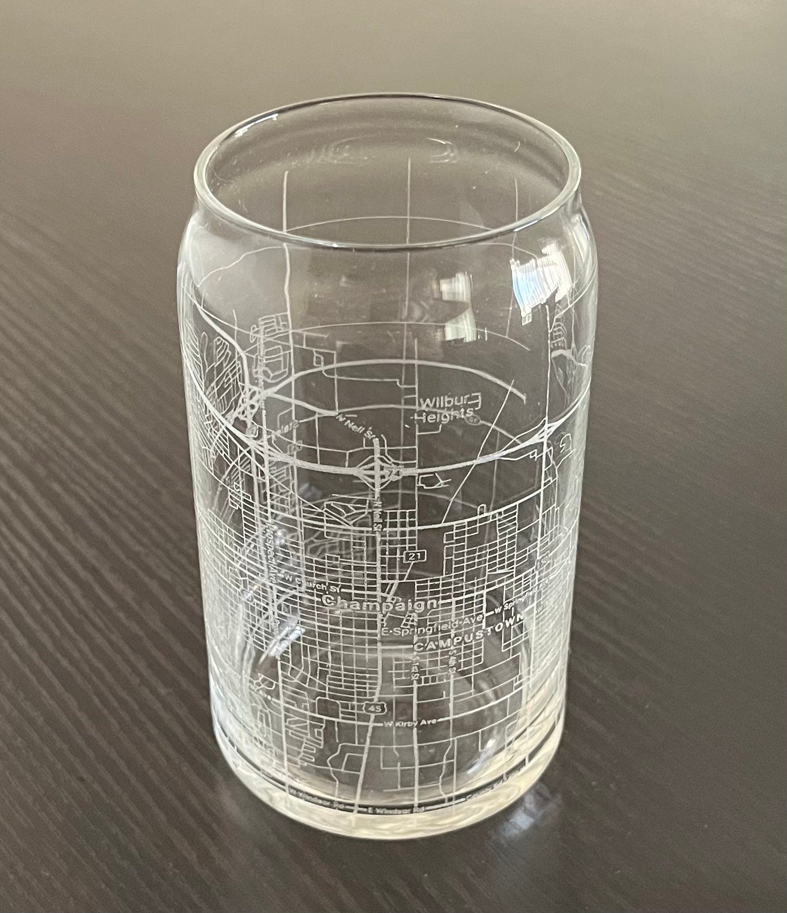 16 oz Beer Can Glass Urban City Map Champaign, IL