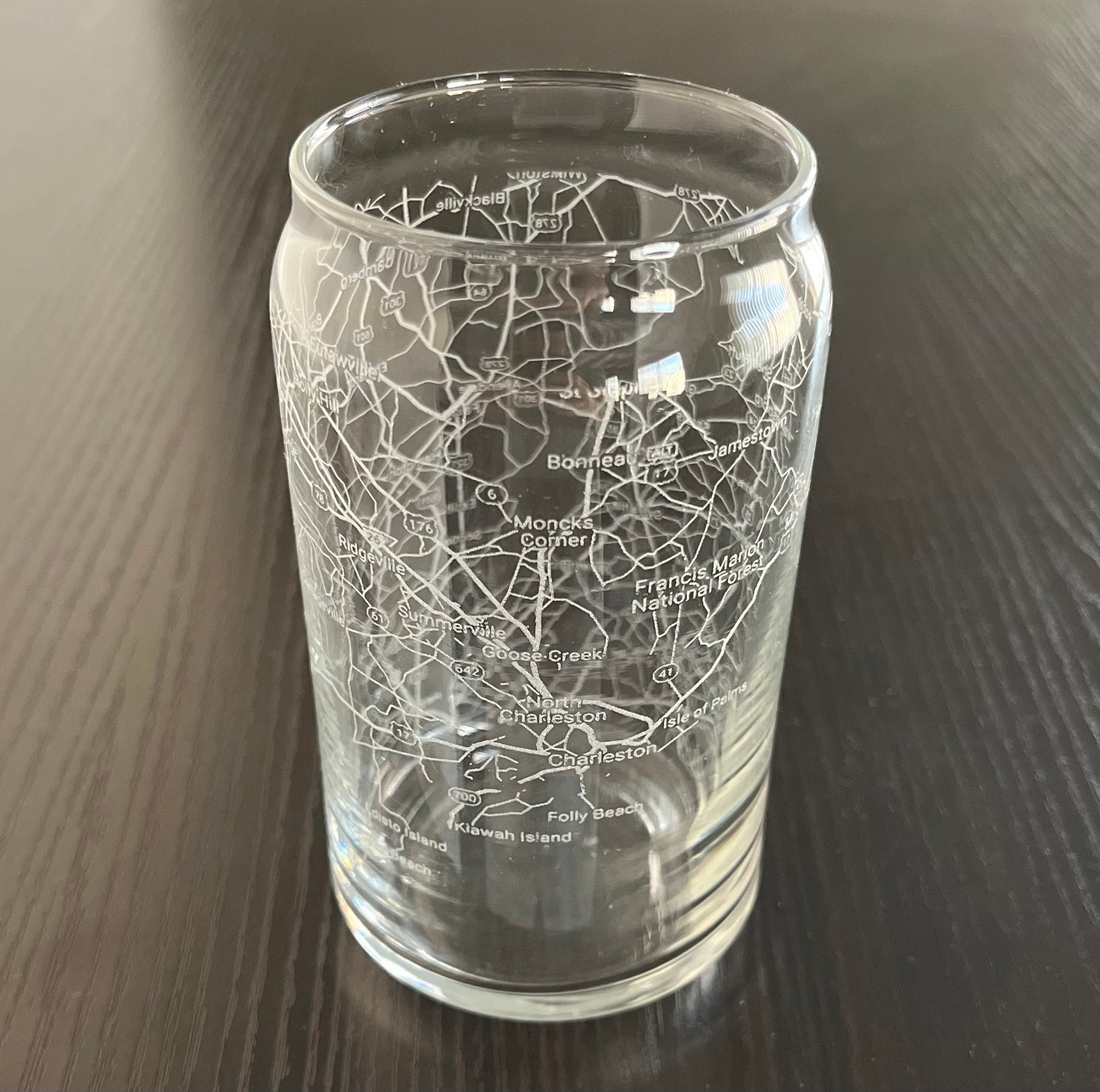 16 oz Beer Can Glass Urban City Map Charleston, SC