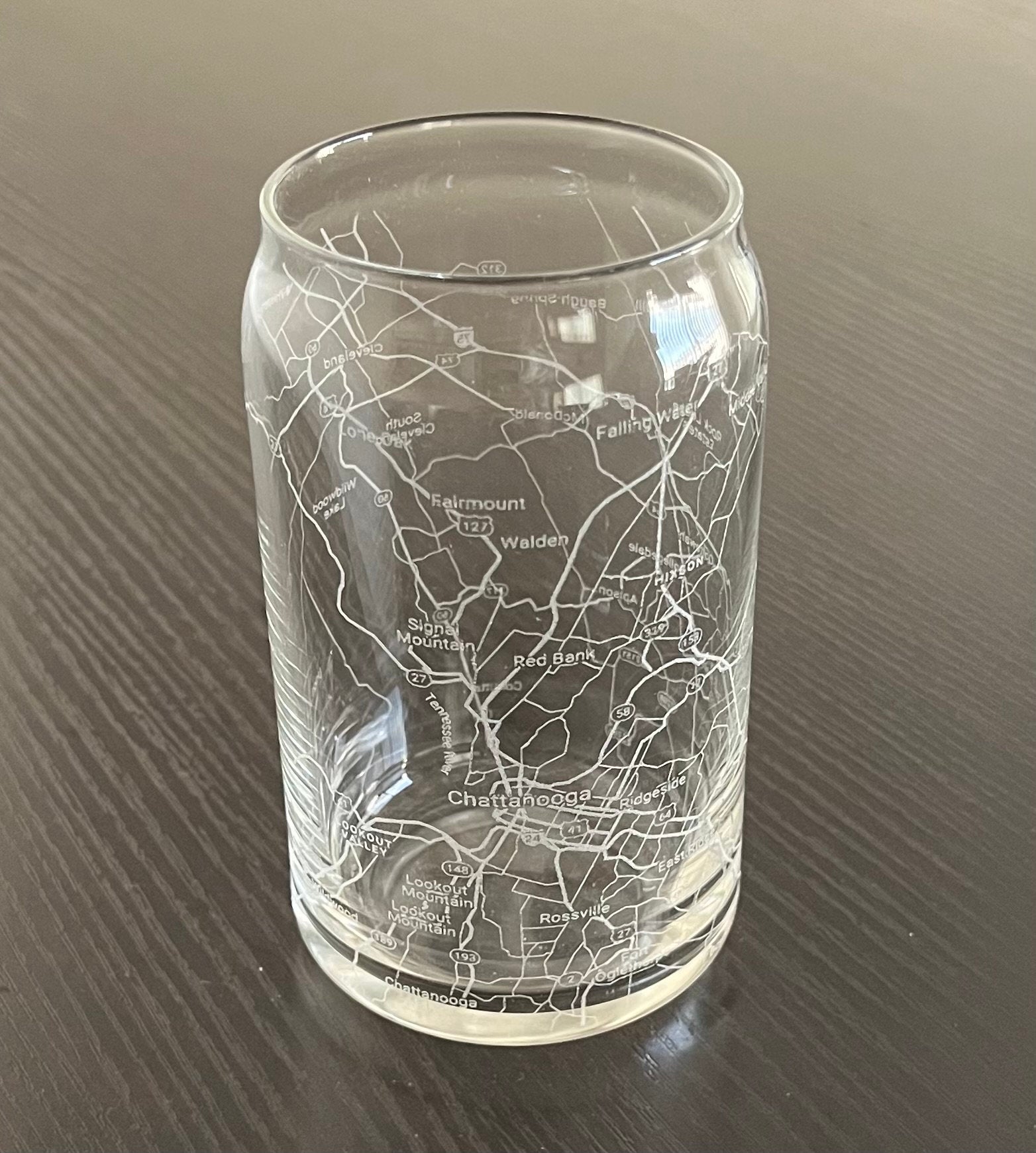 16 oz Beer Can Glass Urban City Map Chattanooga, TN