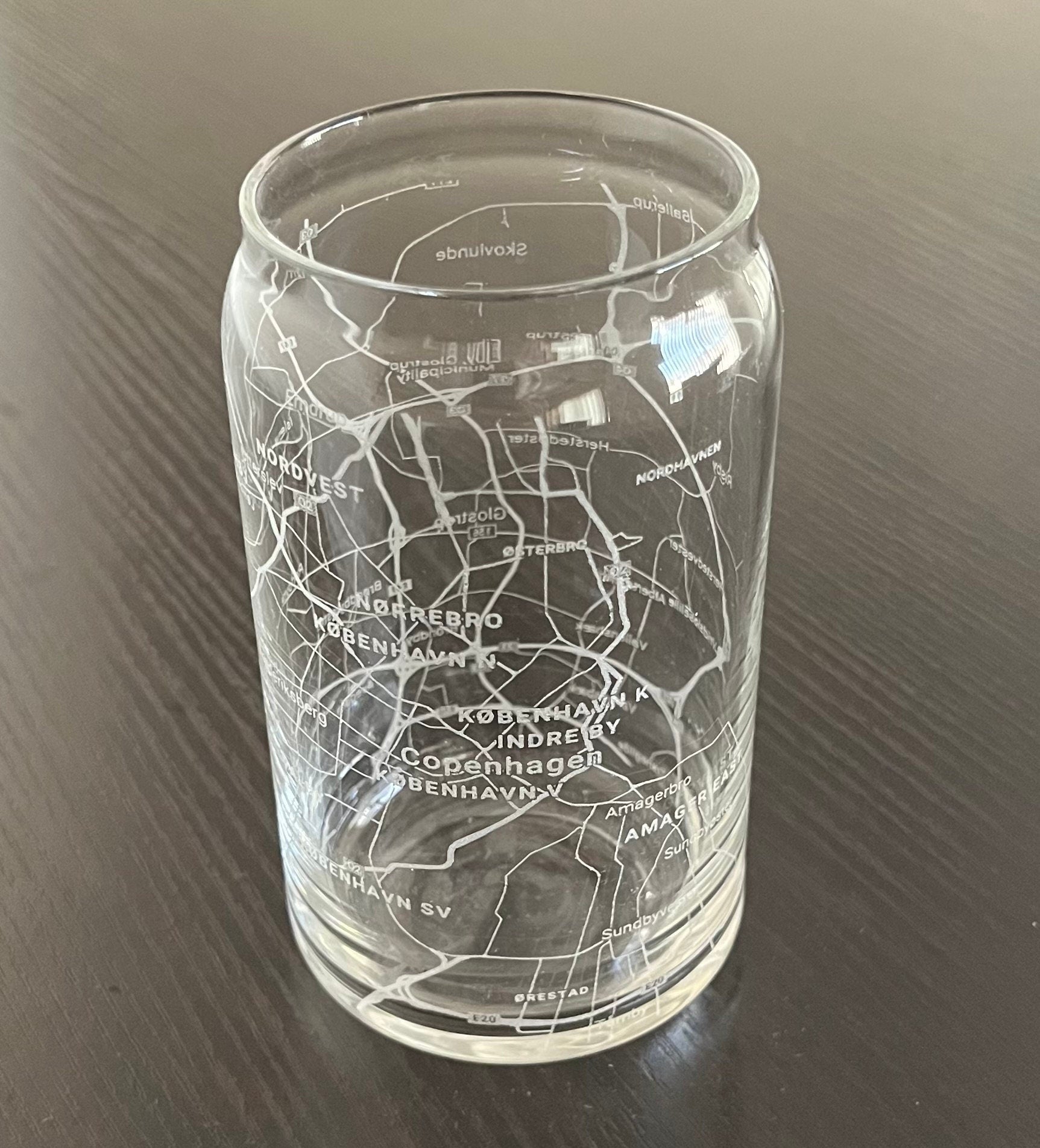 16 oz Beer Can Glass Urban City Map Copenhagen, Denmark