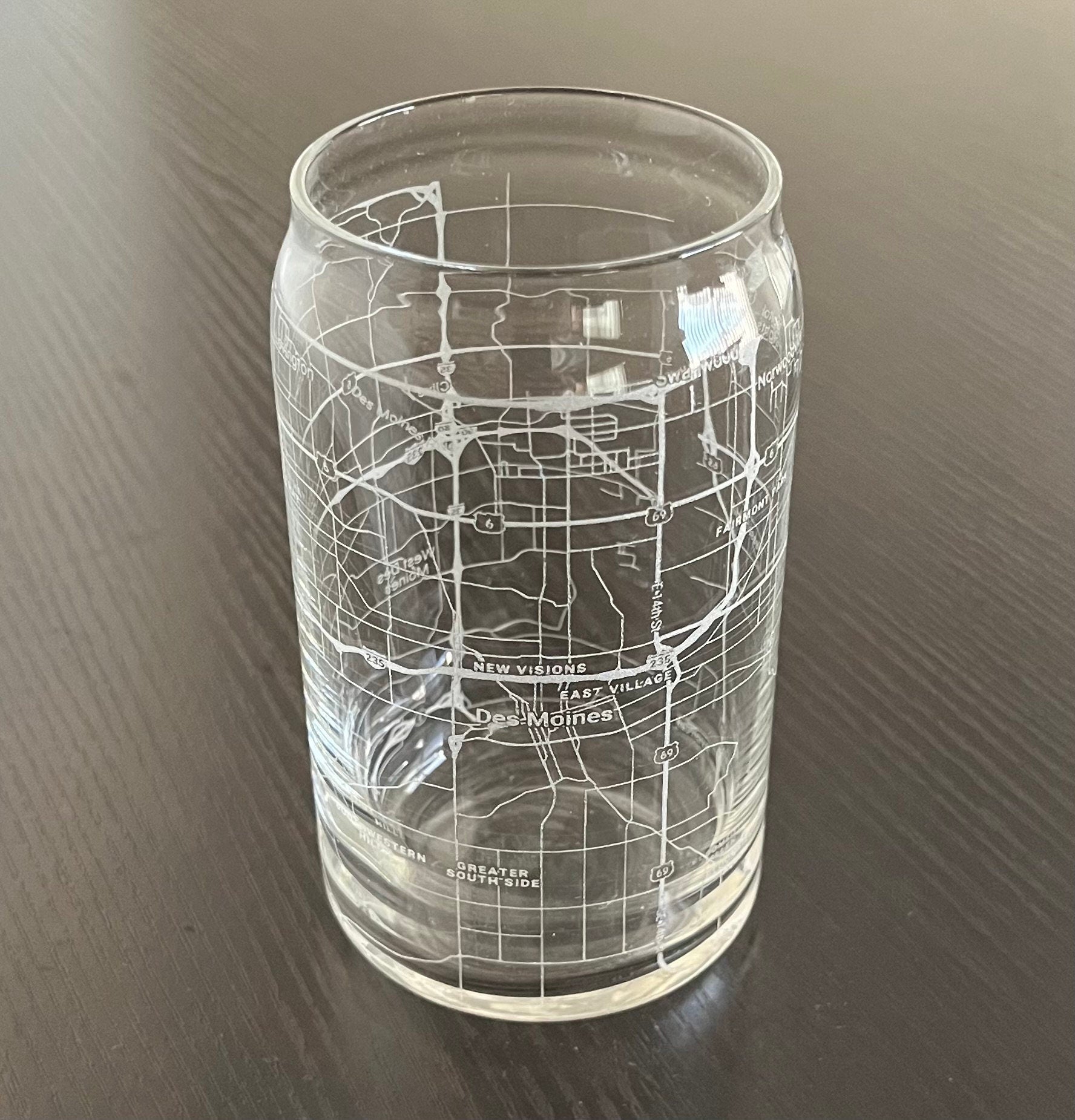 16 oz Beer Can Glass Urban City Map Des Moines, IA