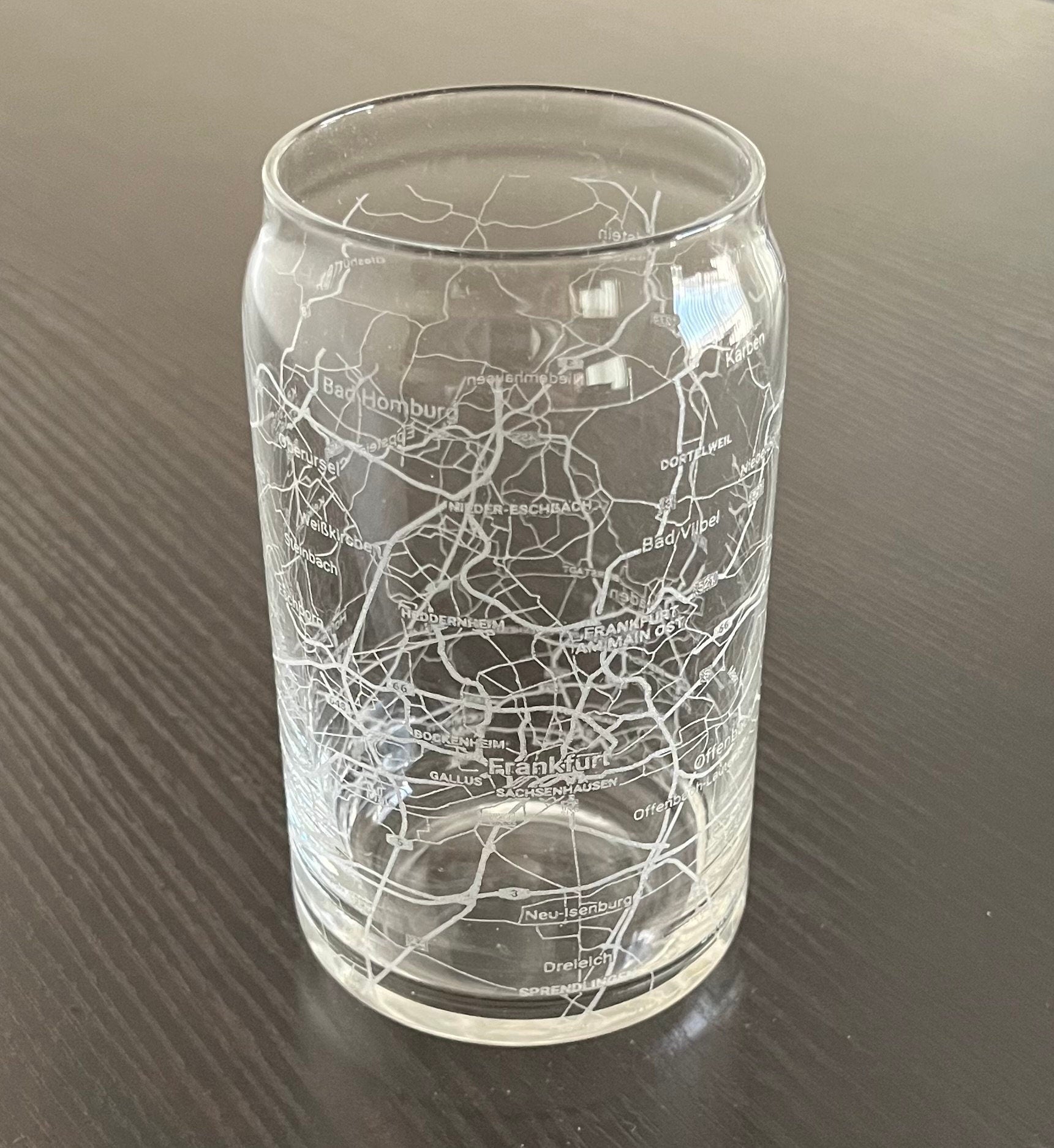 16 oz Beer Can Glass Urban City Map Frankfurt, Germany