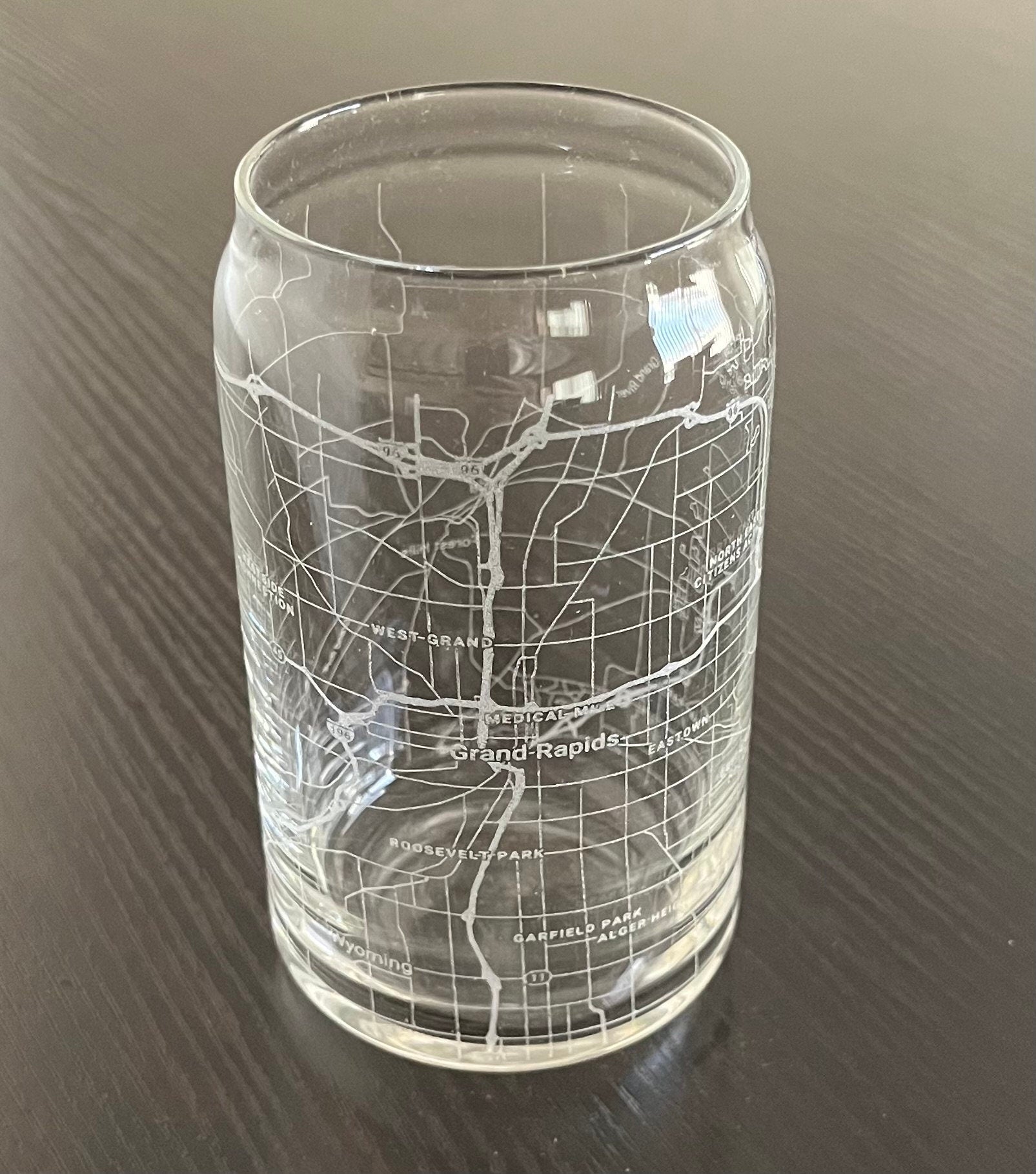 16 oz Beer Can Glass Urban City Map Grand Rapids, MI