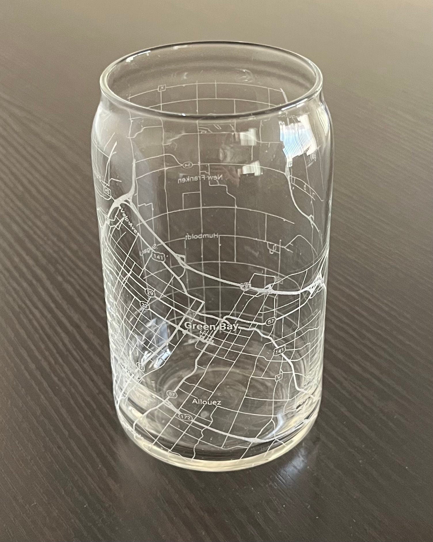 16 oz Beer Can Glass Urban City Map Green Bay WI