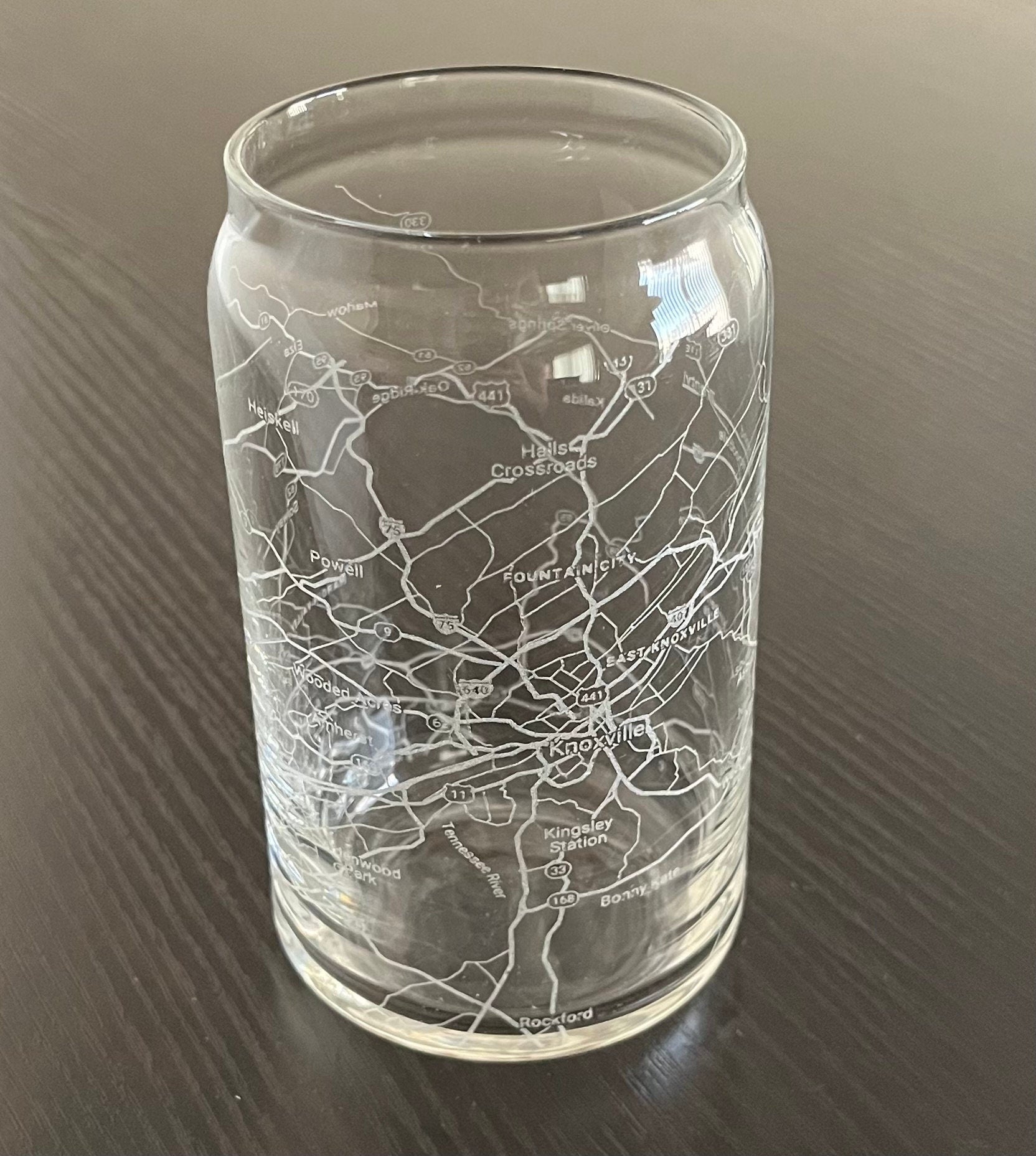 16 oz Beer Can Glass Urban City Map Knoxville, TN