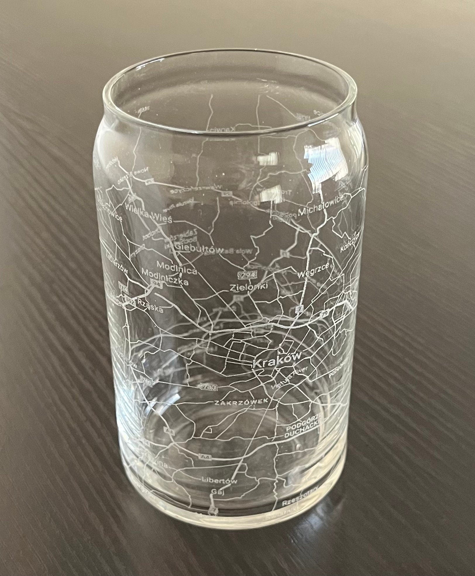 16 oz Beer Can Glass Urban City Map Kraków, Poland