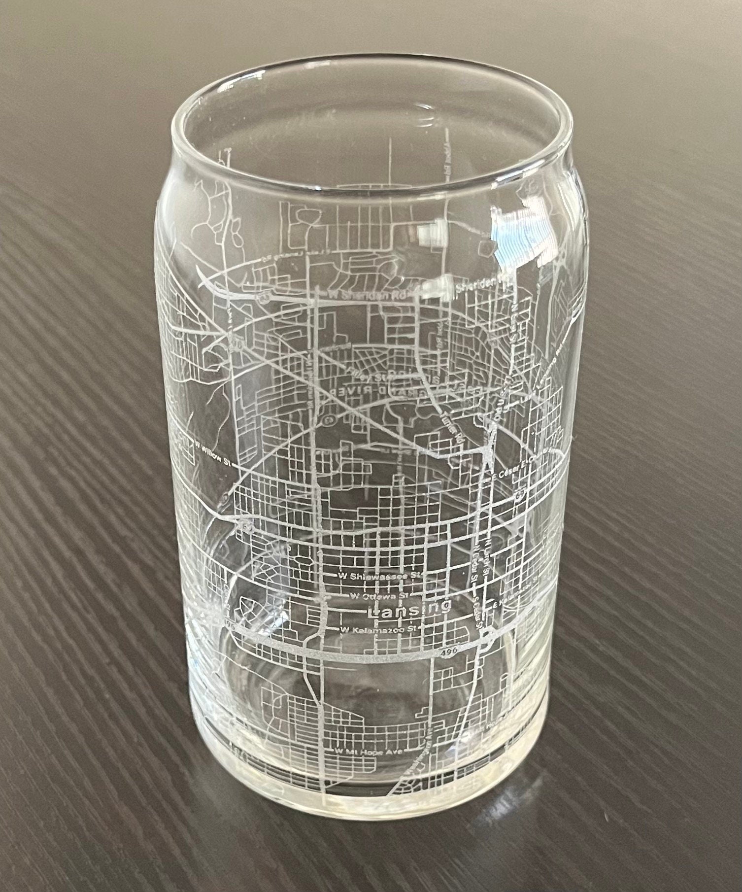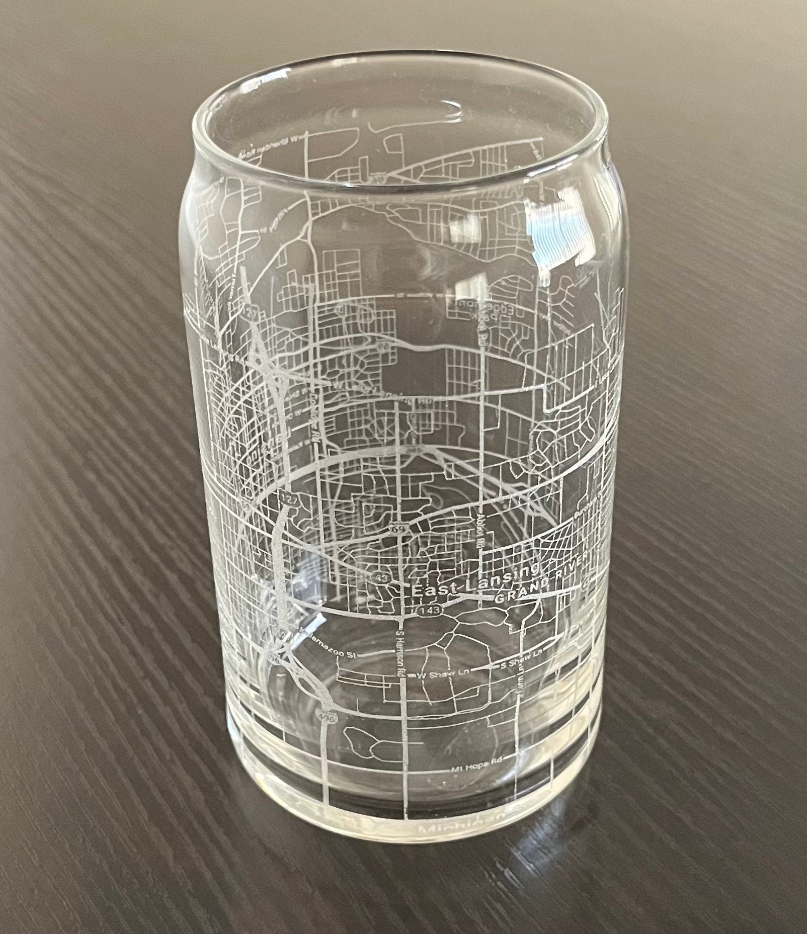 16 oz Beer Can Glass Urban City Map Lansing & East Lansing, MI