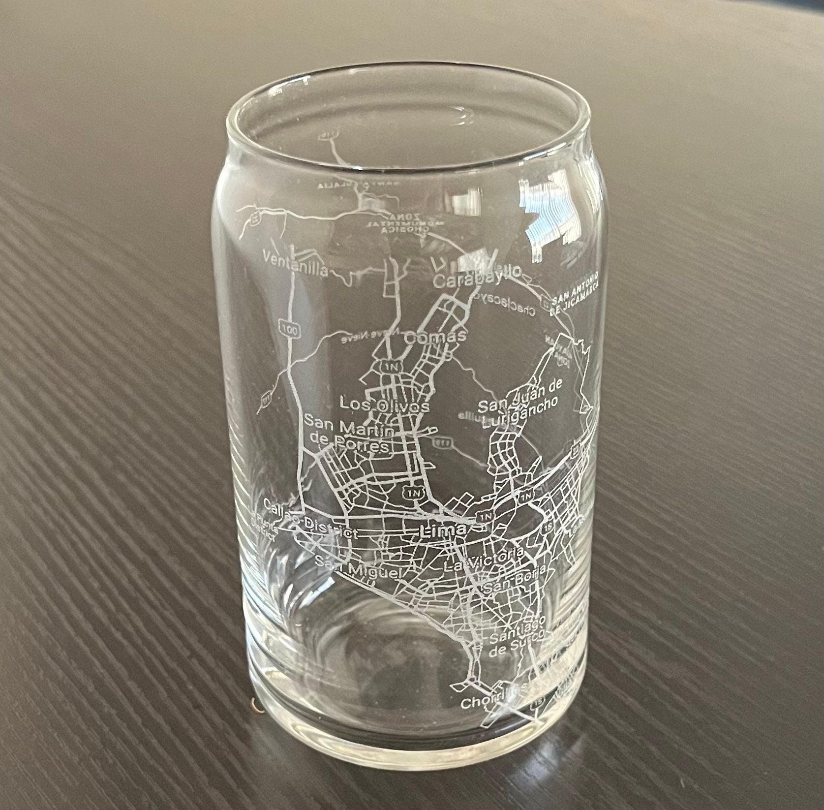 16 oz Beer Can Glass Urban City Map Lima, Peru