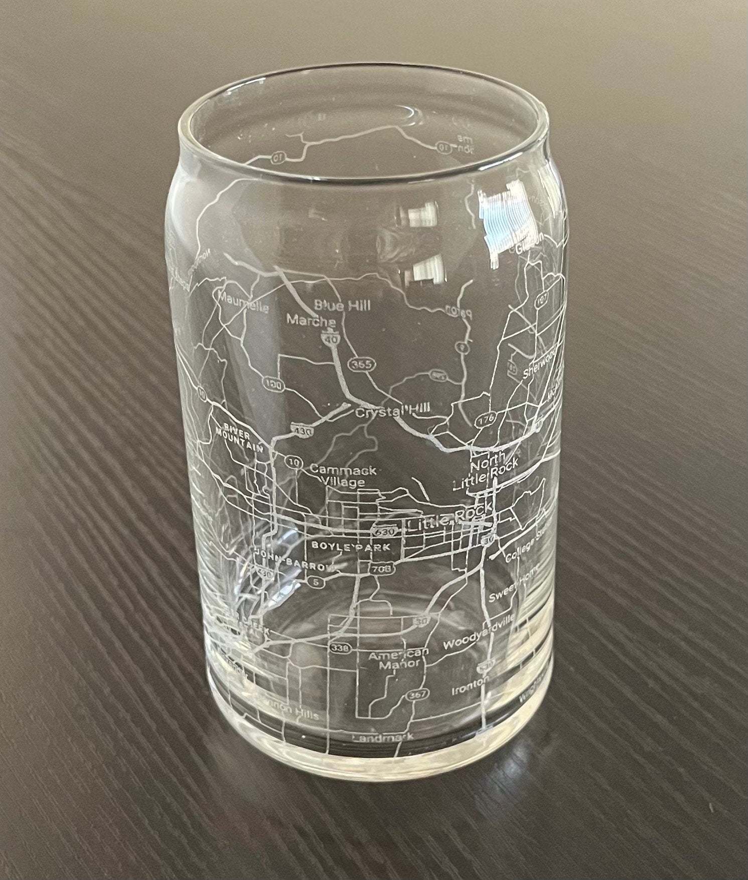 16 oz Beer Can Glass Urban City Map Little Rock, AR