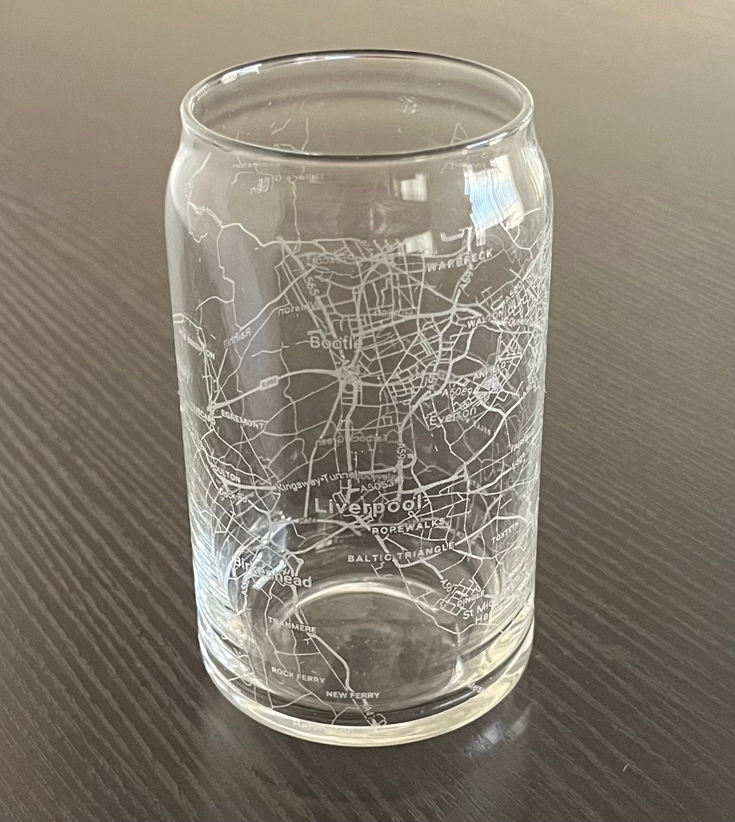 16 oz Beer Can Glass Urban City Map Liverpool, UK
