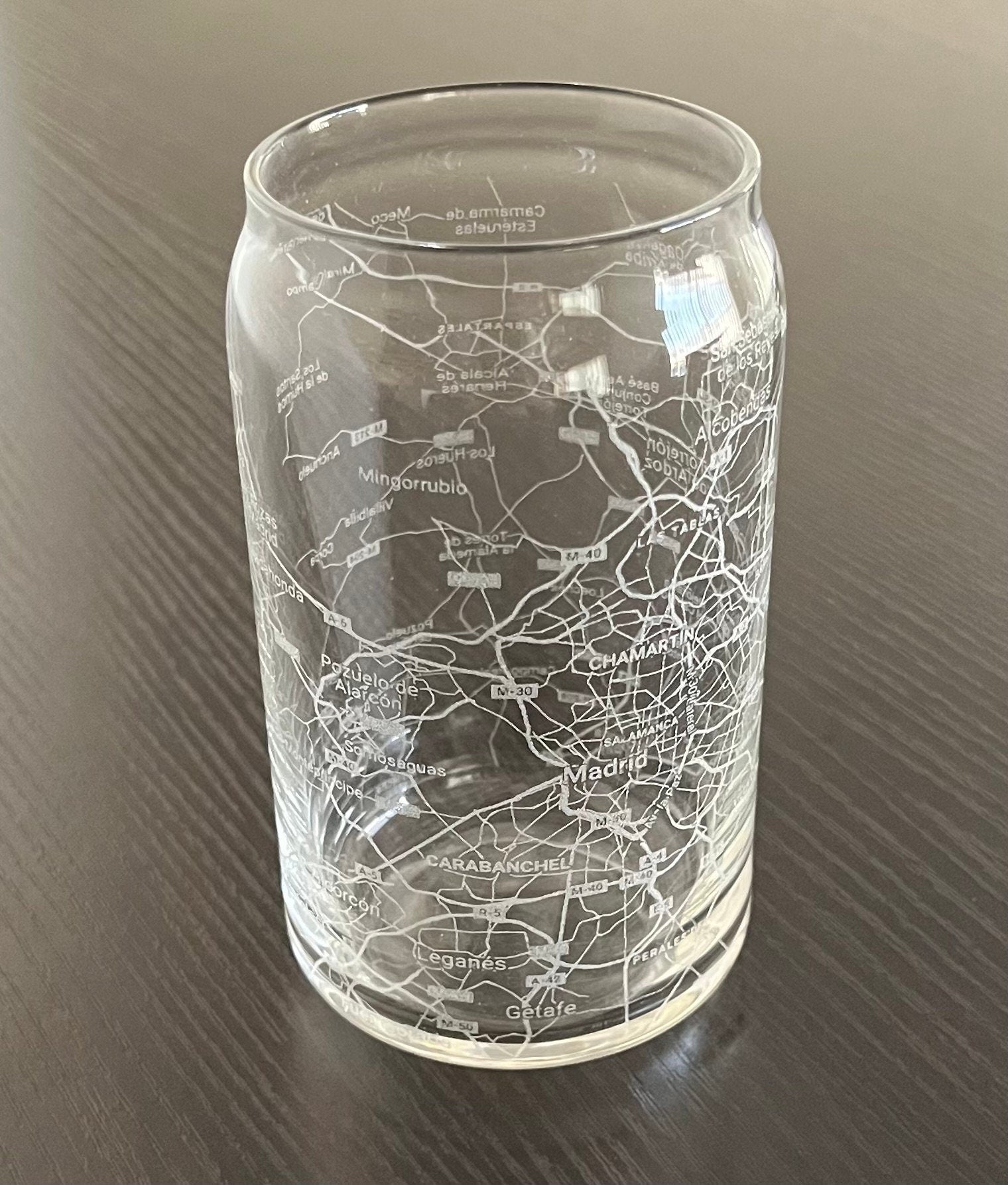 16 oz Beer Can Glass Urban City Map Madrid, Spain