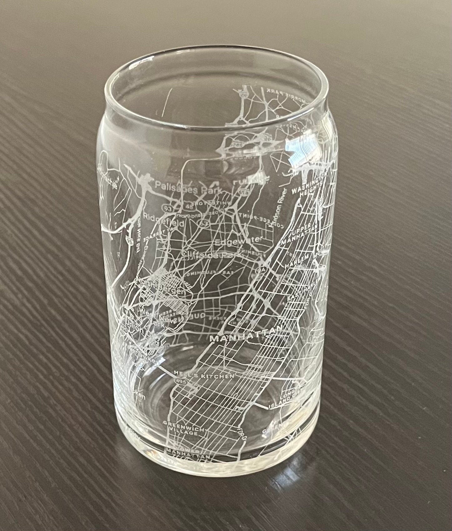 16 oz Beer Can Glass Urban City Map Manhattan, New York