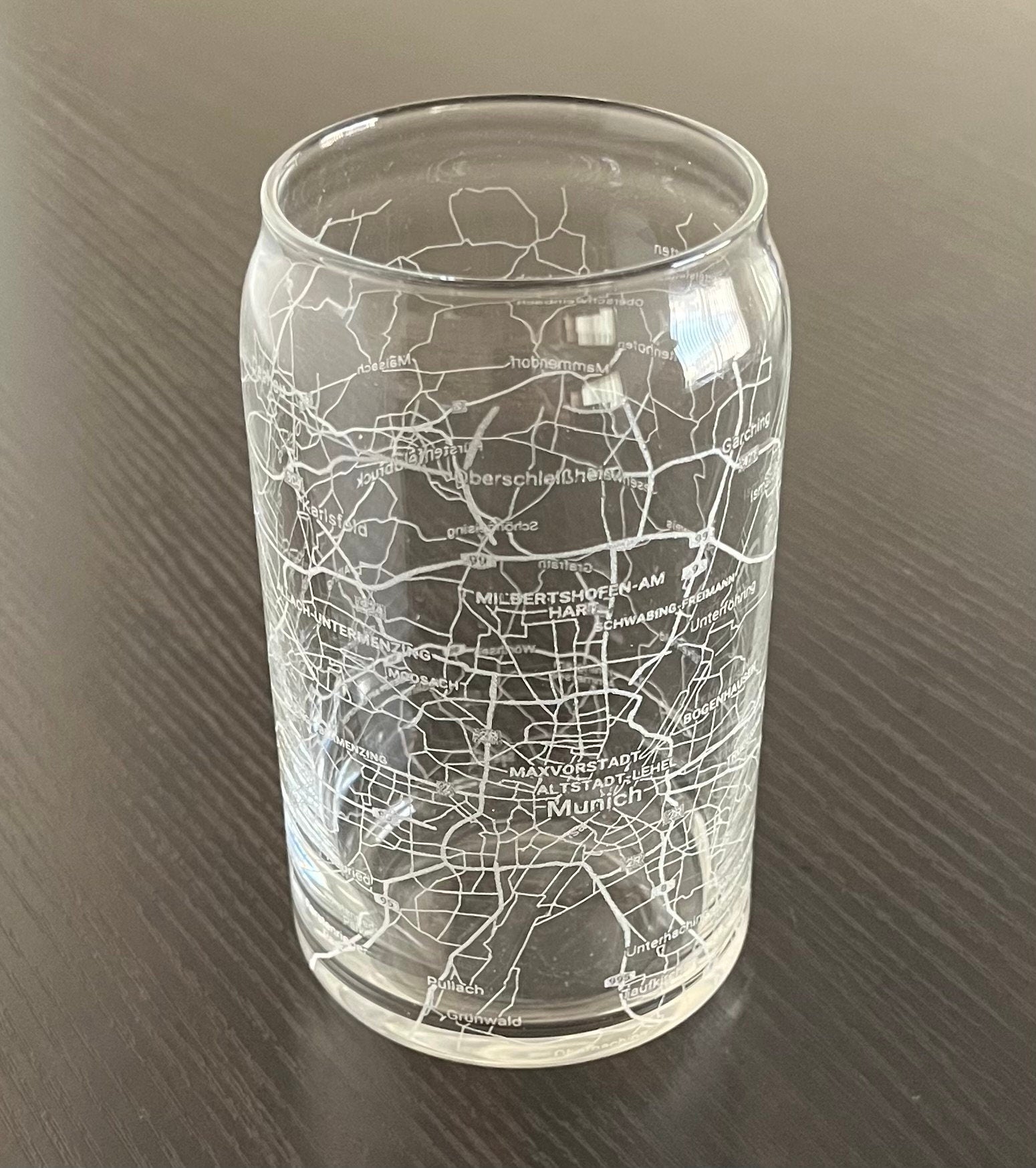 16 oz Beer Can Glass Urban City Map Munich, Germany