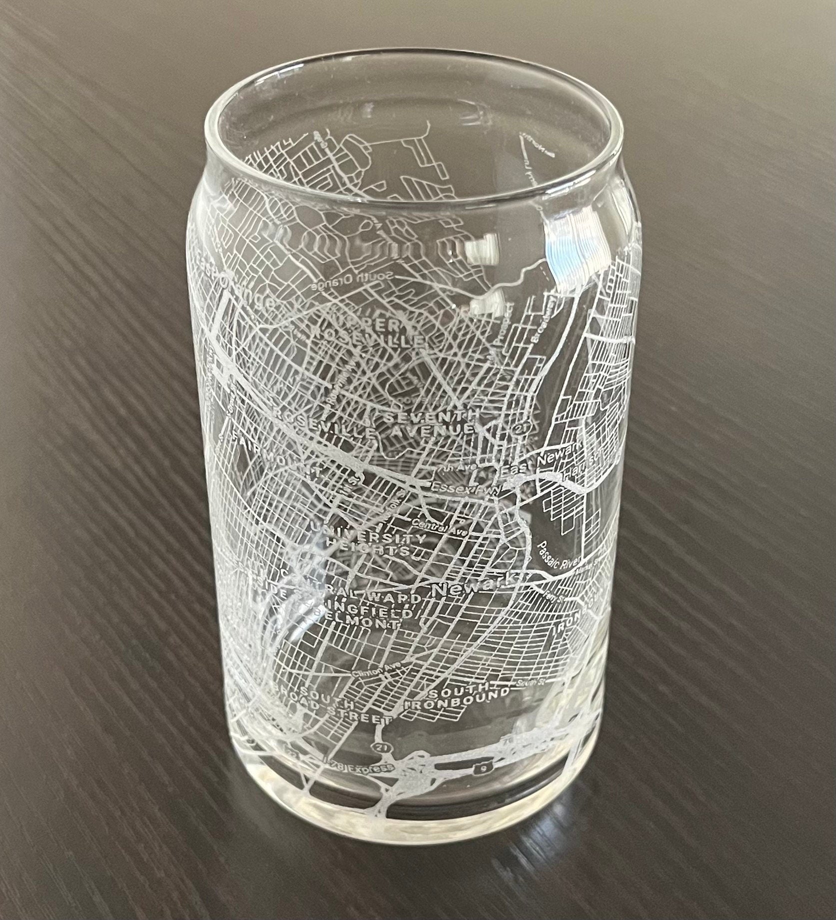 16 oz Beer Can Glass Urban City Map Newark, NJ
