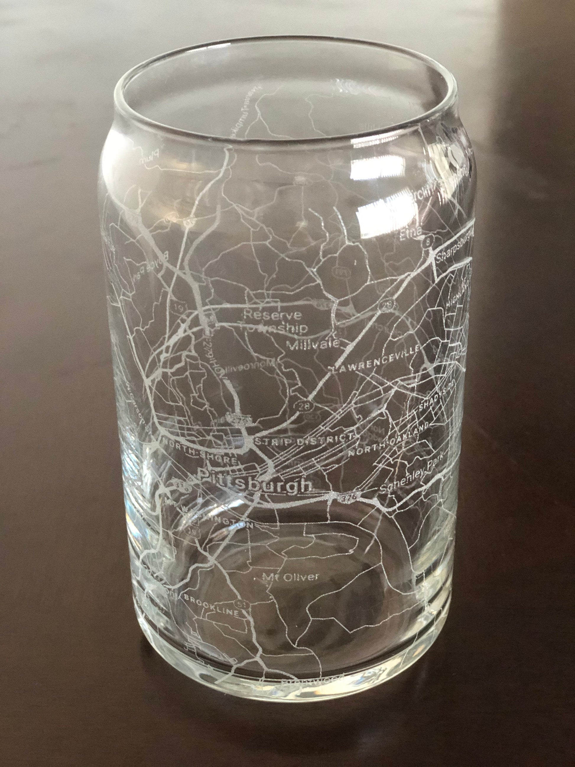16 oz Beer Can Glass Urban City Map Pittsburgh, PA