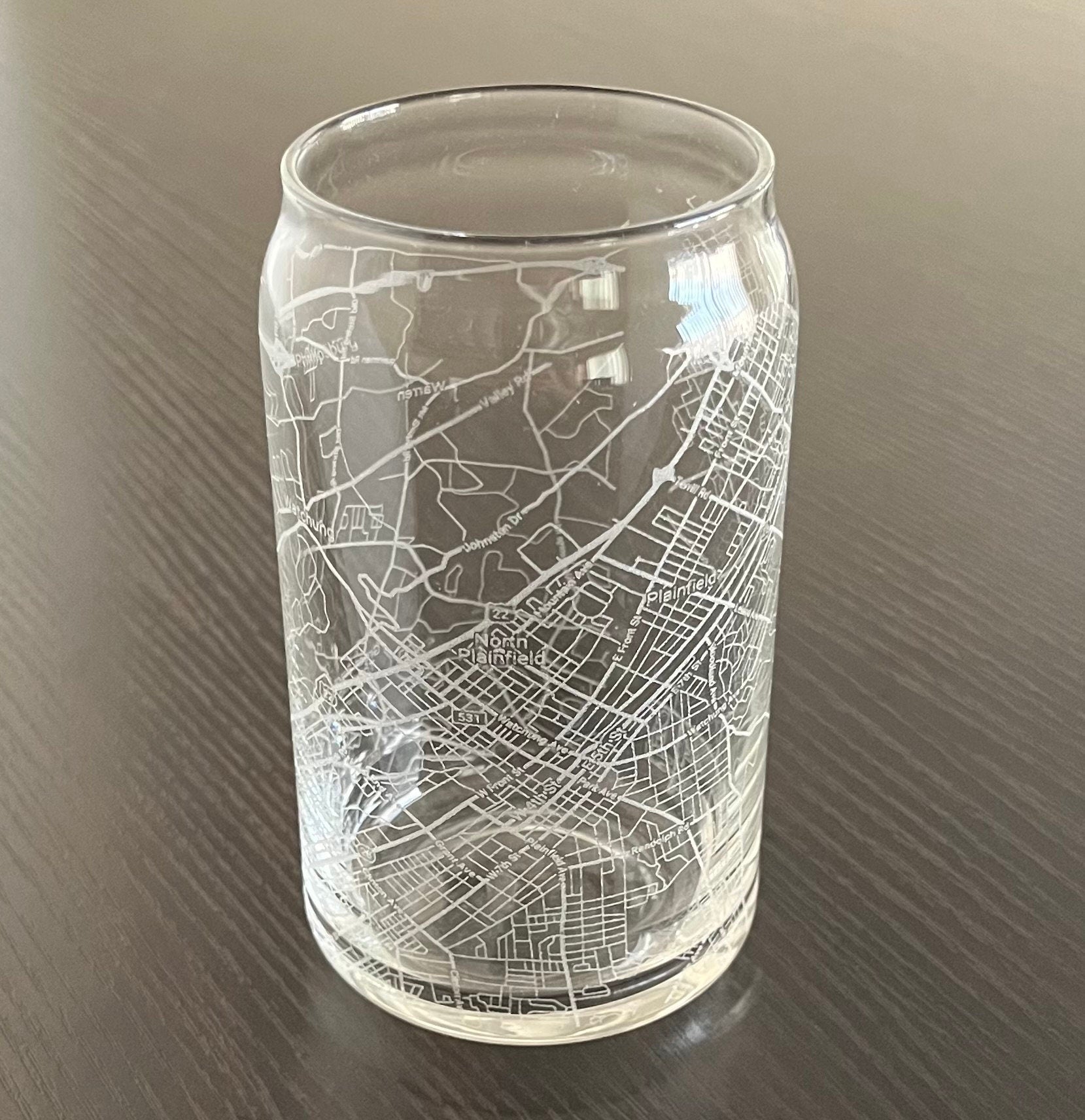 16 oz Beer Can Glass Urban City Map Plainfield, NJ