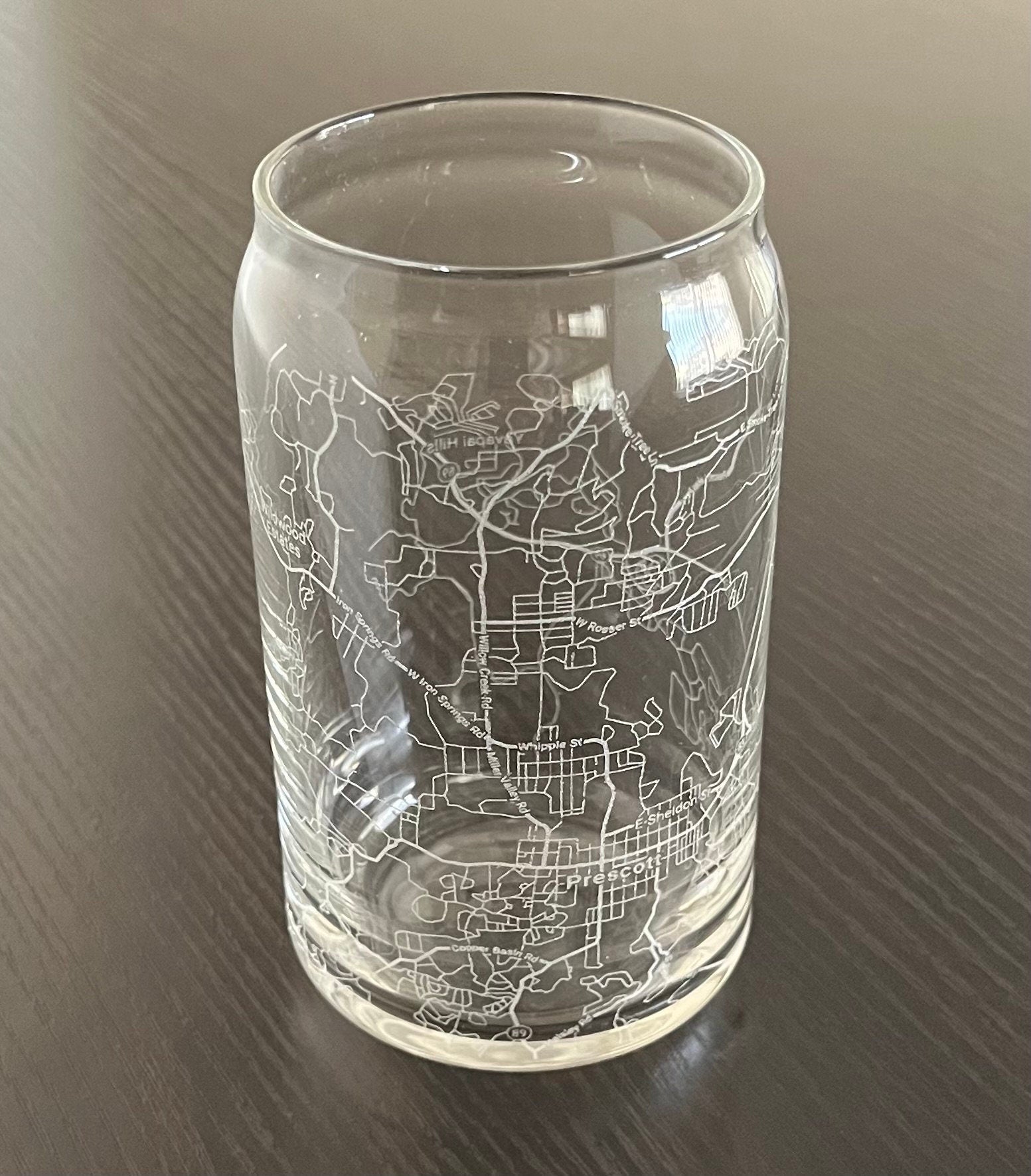 16 oz Beer Can Glass Urban City Map Prescott, AZ