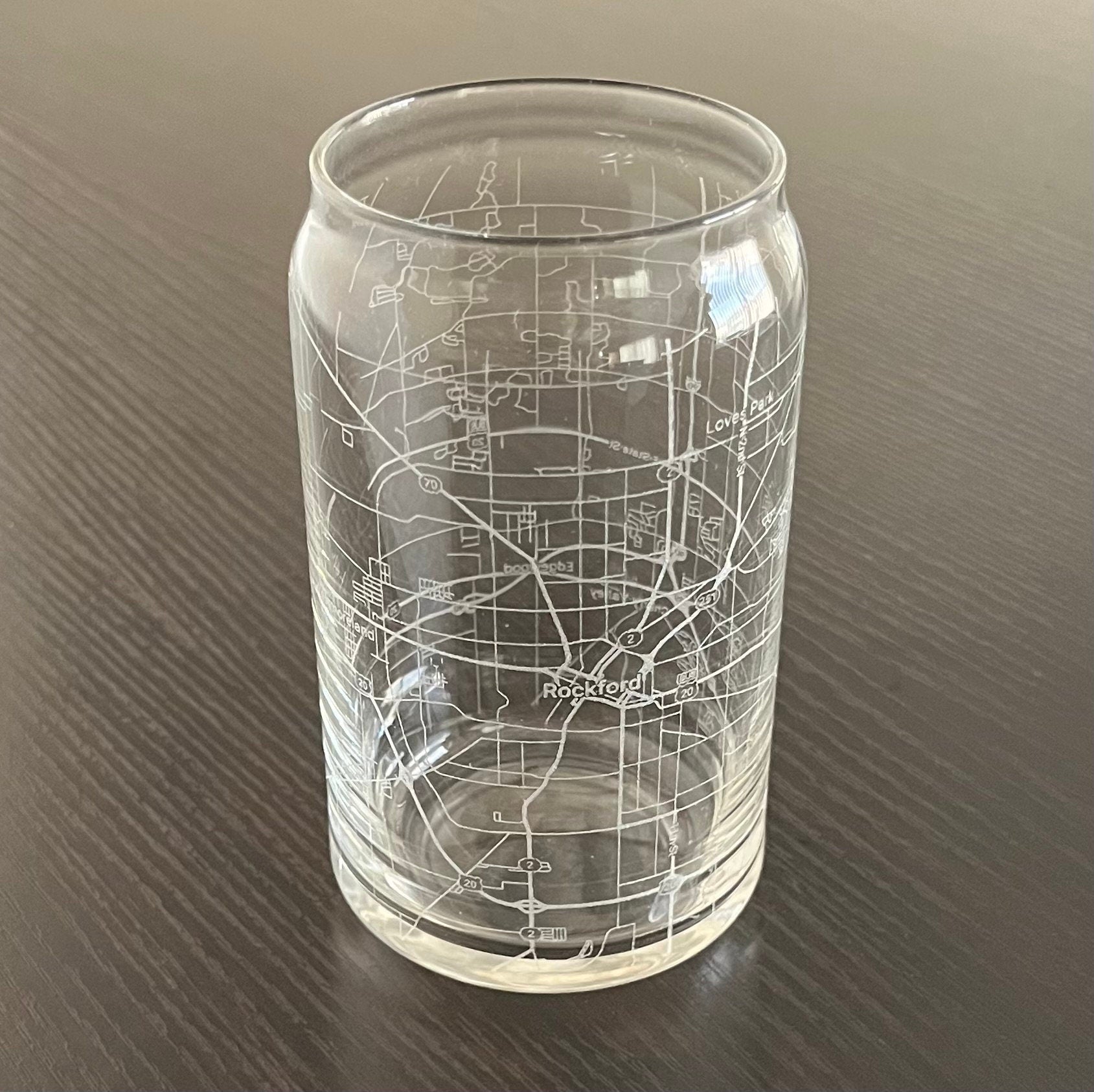 16 oz Beer Can Glass Urban City Map Rockford, IL