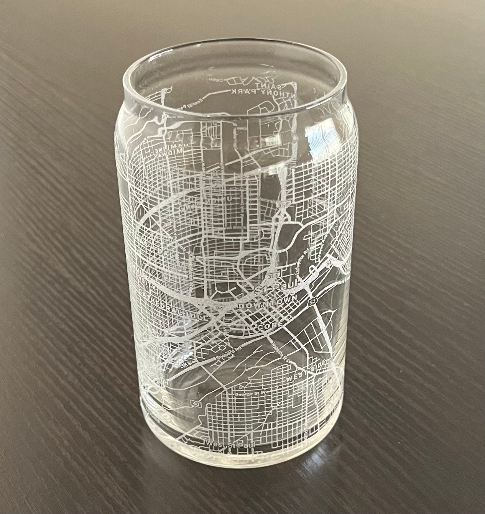 16 oz Beer Can Glass Urban City Map St Paul, MN