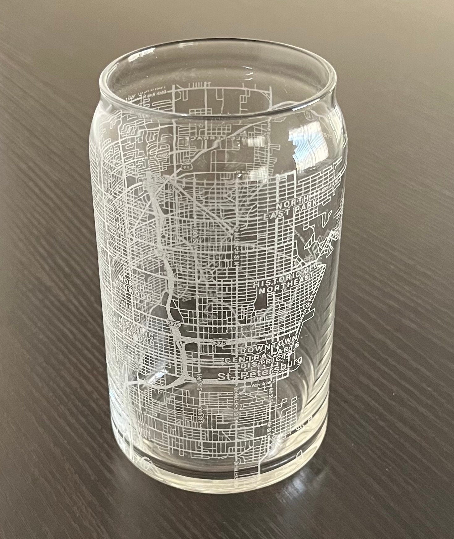 16 oz Beer Can Glass Urban City Map St Petersburg, FL