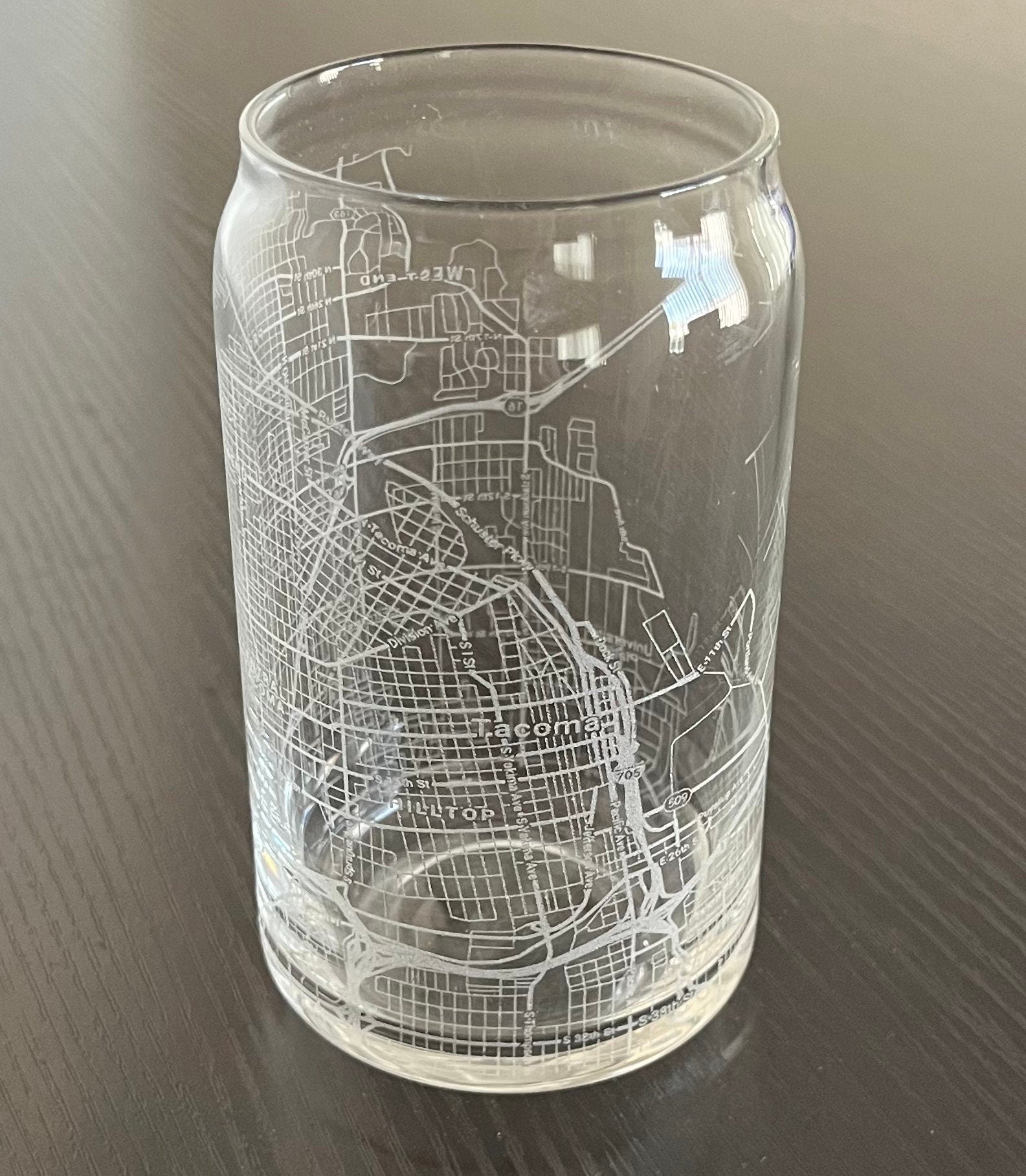 16 oz Beer Can Glass Urban City Map Tacoma, WA