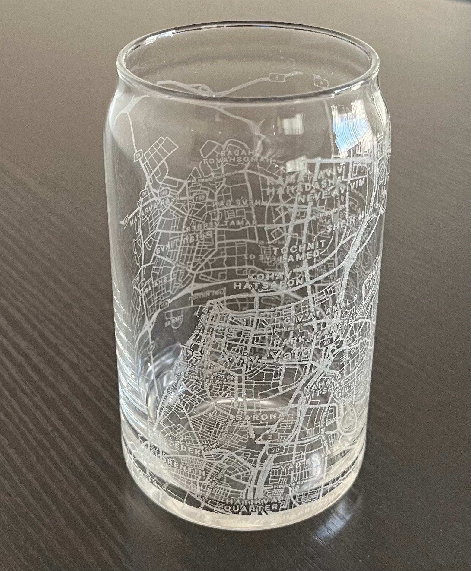 16 oz Beer Can Glass Urban City Map Tel Aviv, Israel