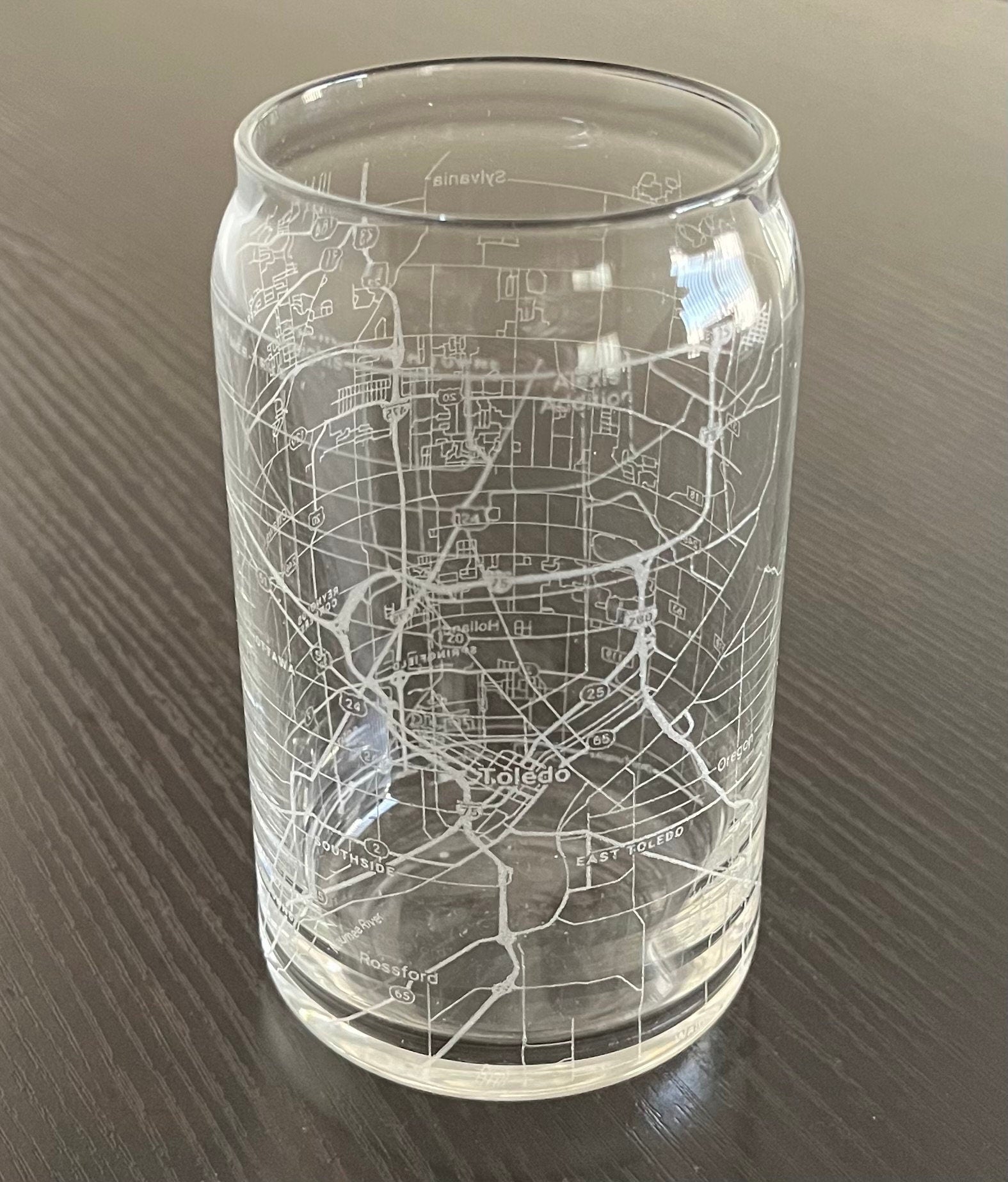 16 oz Beer Can Glass Urban City Map Toledo, OH