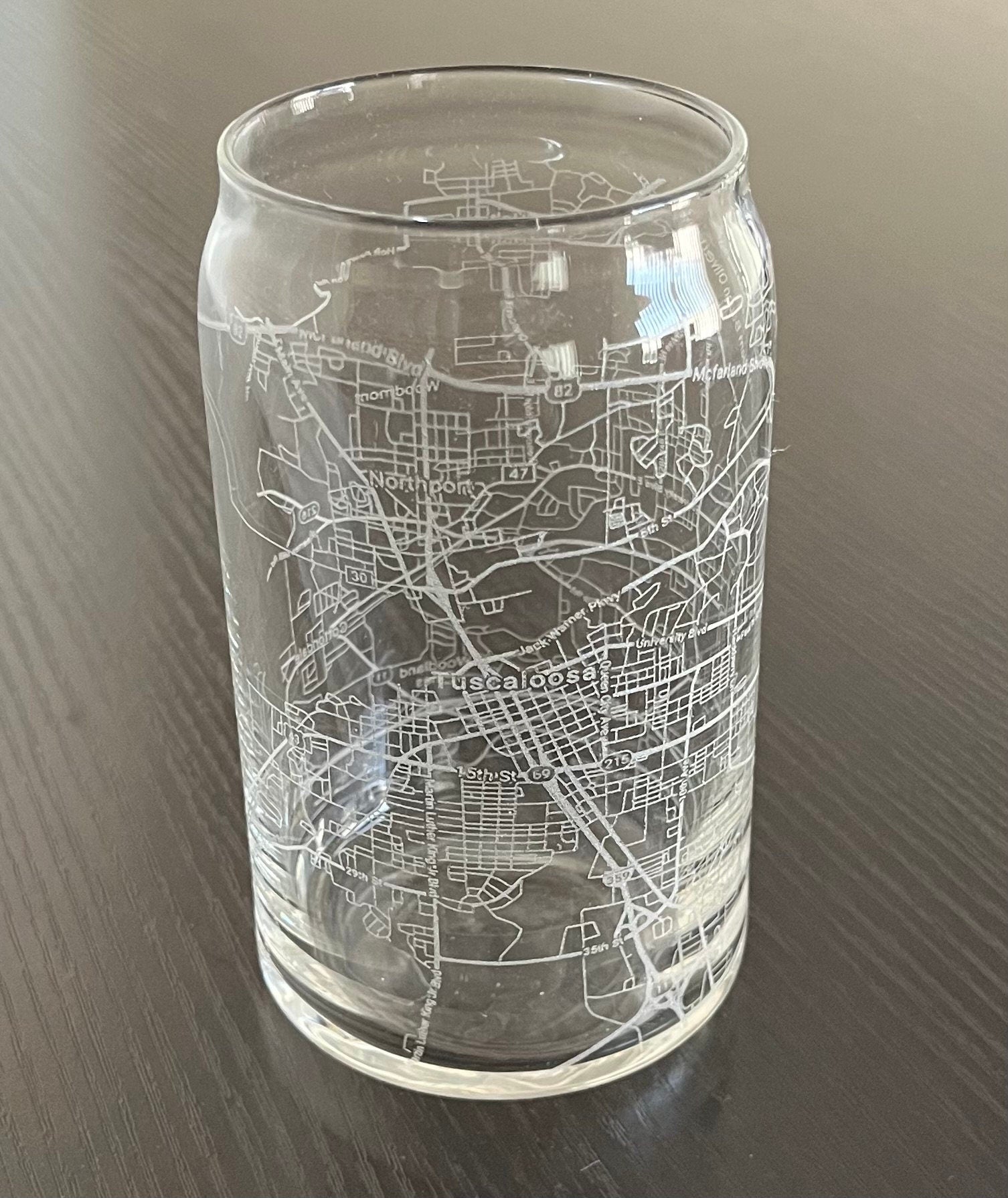 16 oz Beer Can Glass Urban City Map Tuscaloosa, AL