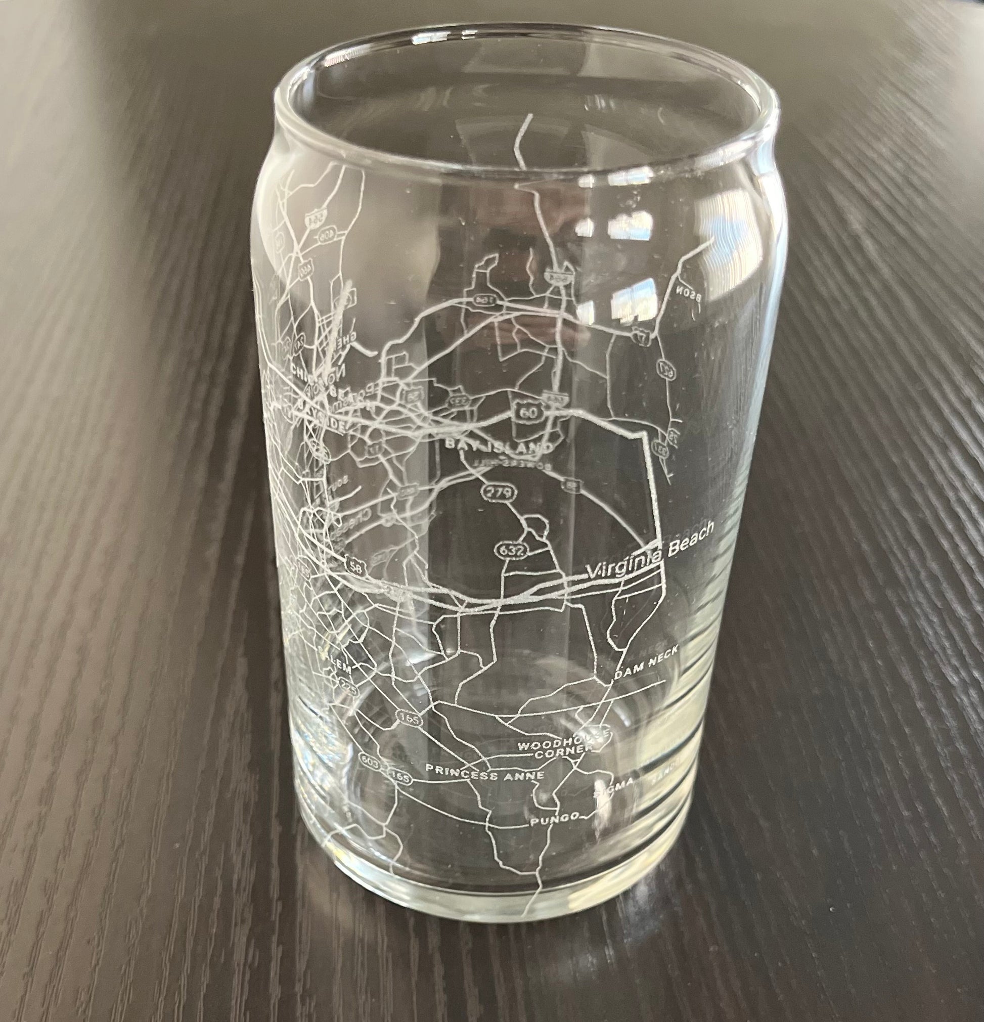 16 oz Beer Can Glass Urban City Map Virginia Beach, VA