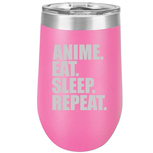 16 oz Double Wall Vacuum Insulated Stainless Steel Stemless Wine Tumbler Glass Coffee Travel Mug With Lid Anime Eat Sleep Repeat (Hot Pink)
