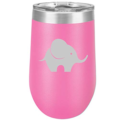 16 oz Double Wall Vacuum Insulated Stainless Steel Stemless Wine Tumbler Glass Coffee Travel Mug With Lid Baby Elephant (Hot Pink)