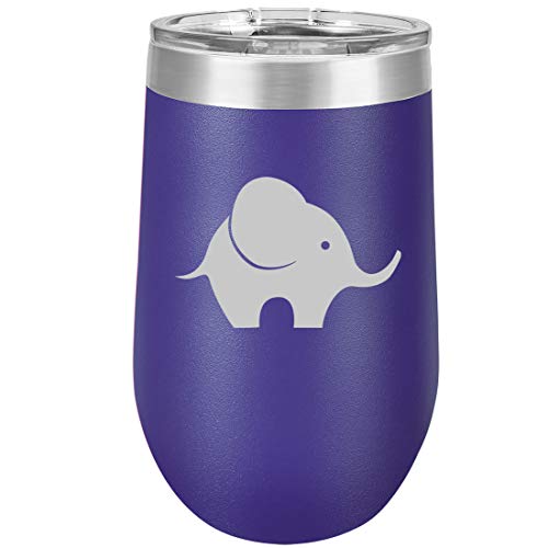 16 oz Double Wall Vacuum Insulated Stainless Steel Stemless Wine Tumbler Glass Coffee Travel Mug With Lid Baby Elephant (Purple)