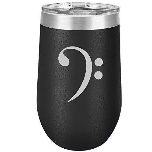 16 oz Double Wall Vacuum Insulated Stainless Steel Stemless Wine Tumbler Glass Coffee Travel Mug With Lid Bass Clef (Black)