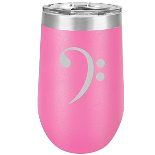 16 oz Double Wall Vacuum Insulated Stainless Steel Stemless Wine Tumbler Glass Coffee Travel Mug With Lid Bass Clef (Hot Pink)