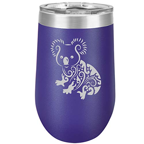 16 oz Double Wall Vacuum Insulated Stainless Steel Stemless Wine Tumbler Glass Coffee Travel Mug With Lid Fancy Koala Bear (Purple)